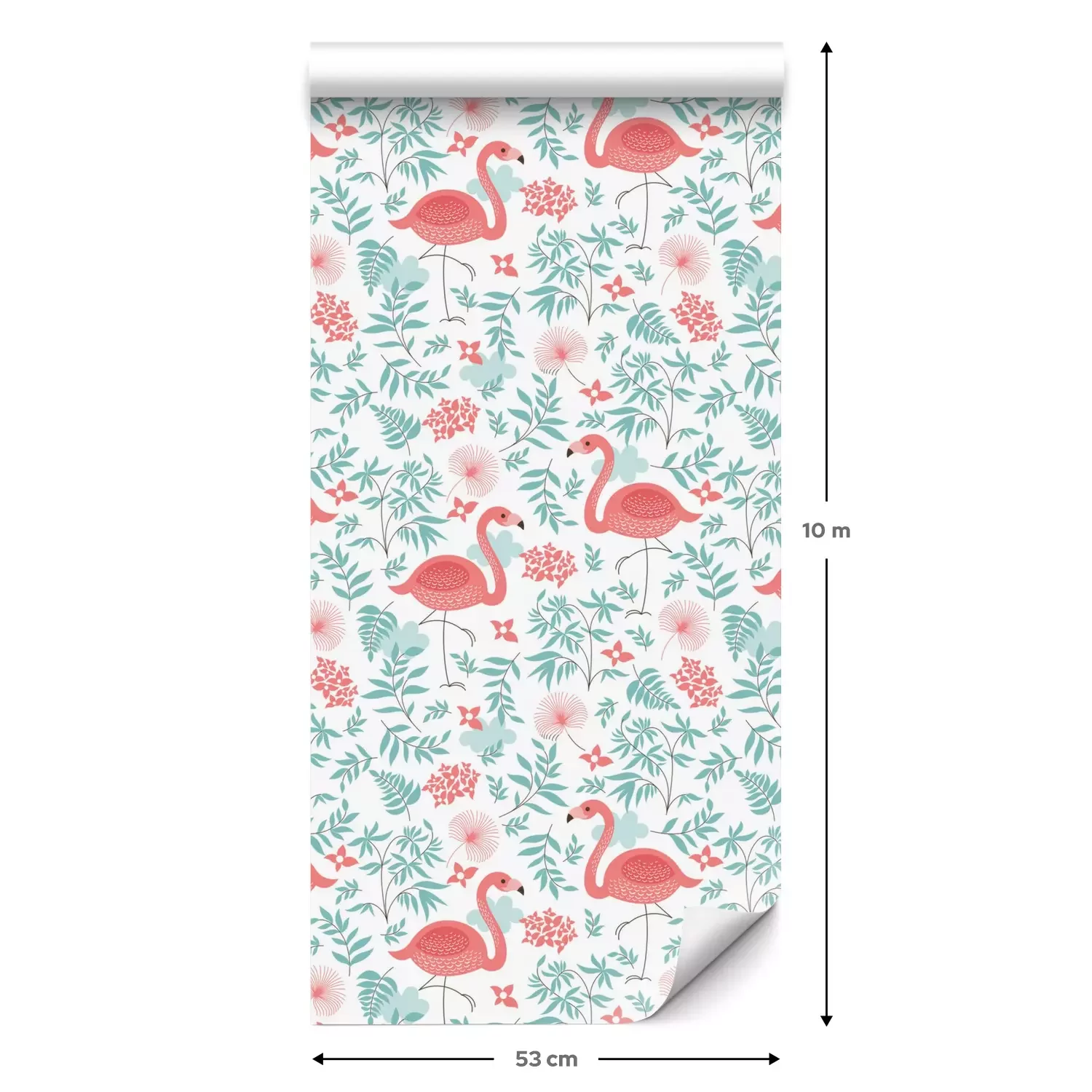 Eine Standard-Tapetenrolle hat die Maße 0,53 m x 10 m und deckt eine Wandfläche von etwa 5 m² ab.