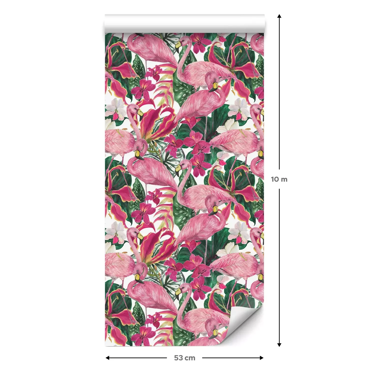 Eine Standard-Tapetenrolle hat die Maße 0,53 m x 10 m und deckt eine Wandfläche von etwa 5 m² ab.