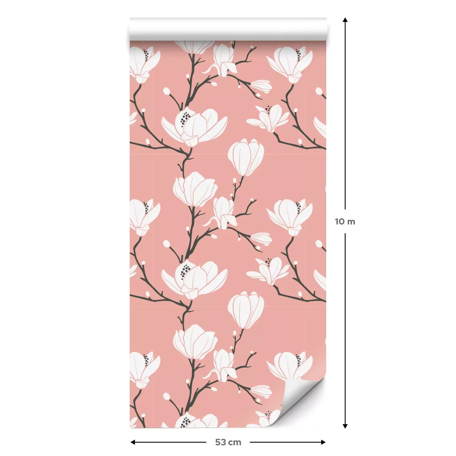 Eine Standard-Tapetenrolle hat die Maße 0,53 m x 10 m und deckt eine Wandfläche von etwa 5 m² ab.