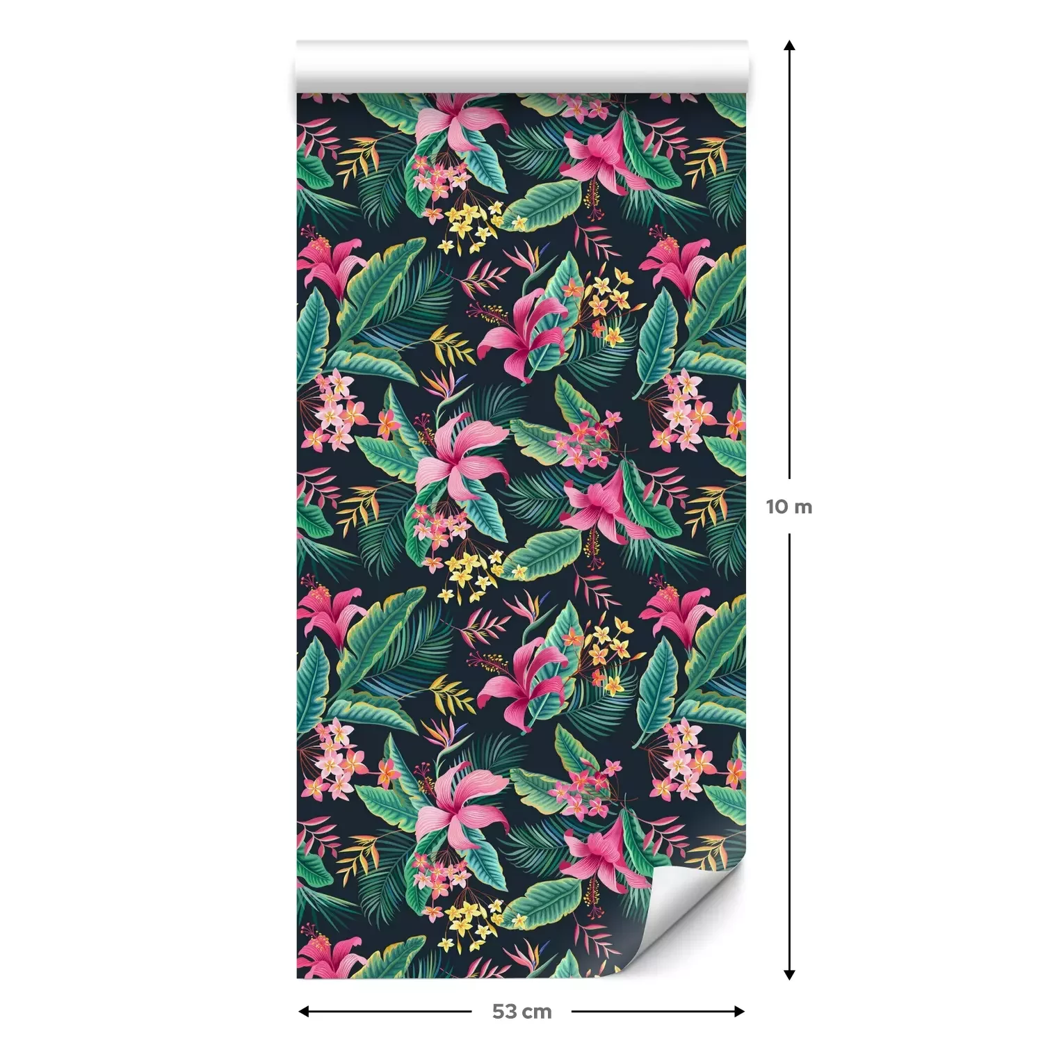 Eine Standard-Tapetenrolle hat die Maße 0,53 m x 10 m und deckt eine Wandfläche von etwa 5 m² ab.