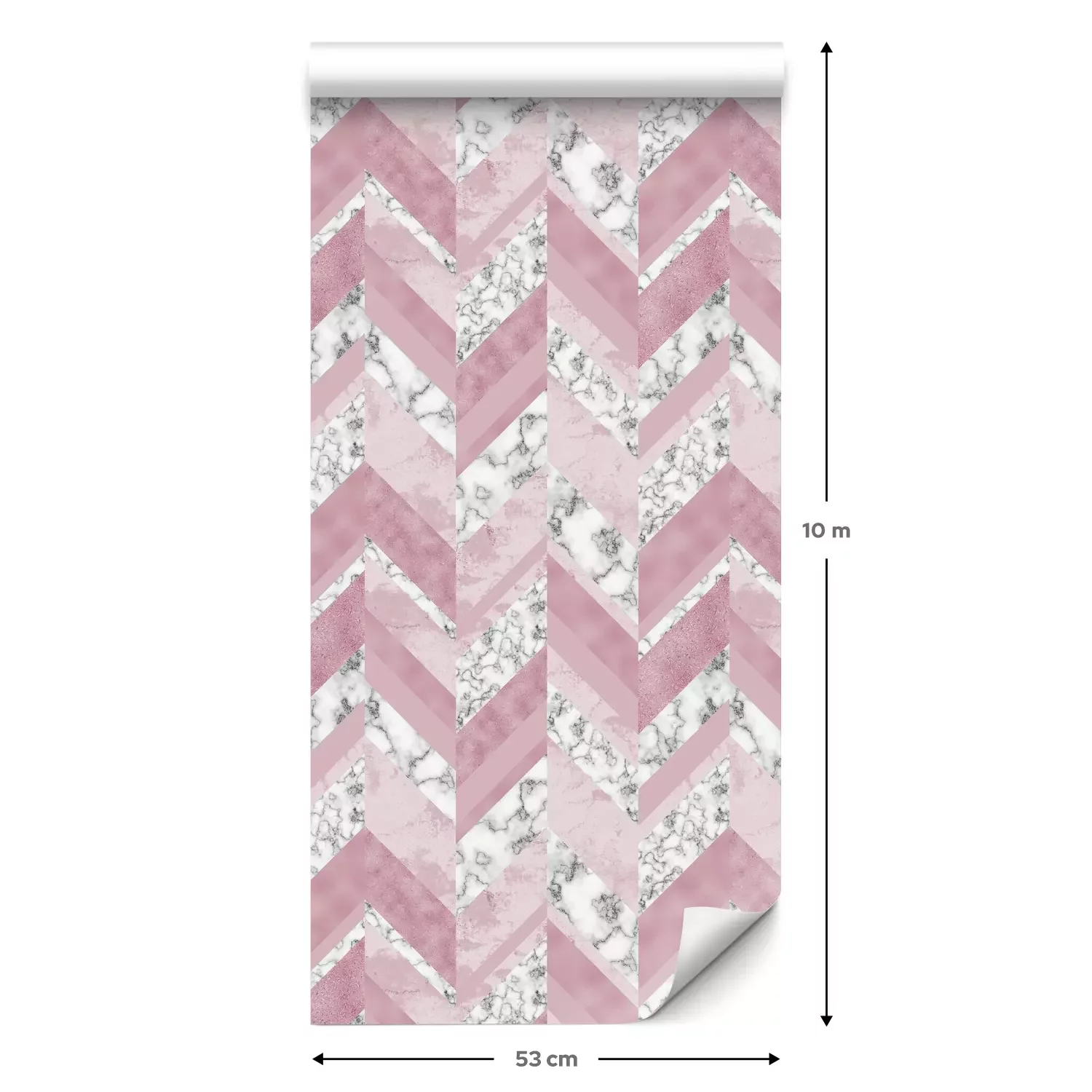 Eine Standard-Tapetenrolle hat die Maße 0,53 m x 10 m und deckt eine Wandfläche von etwa 5 m² ab.