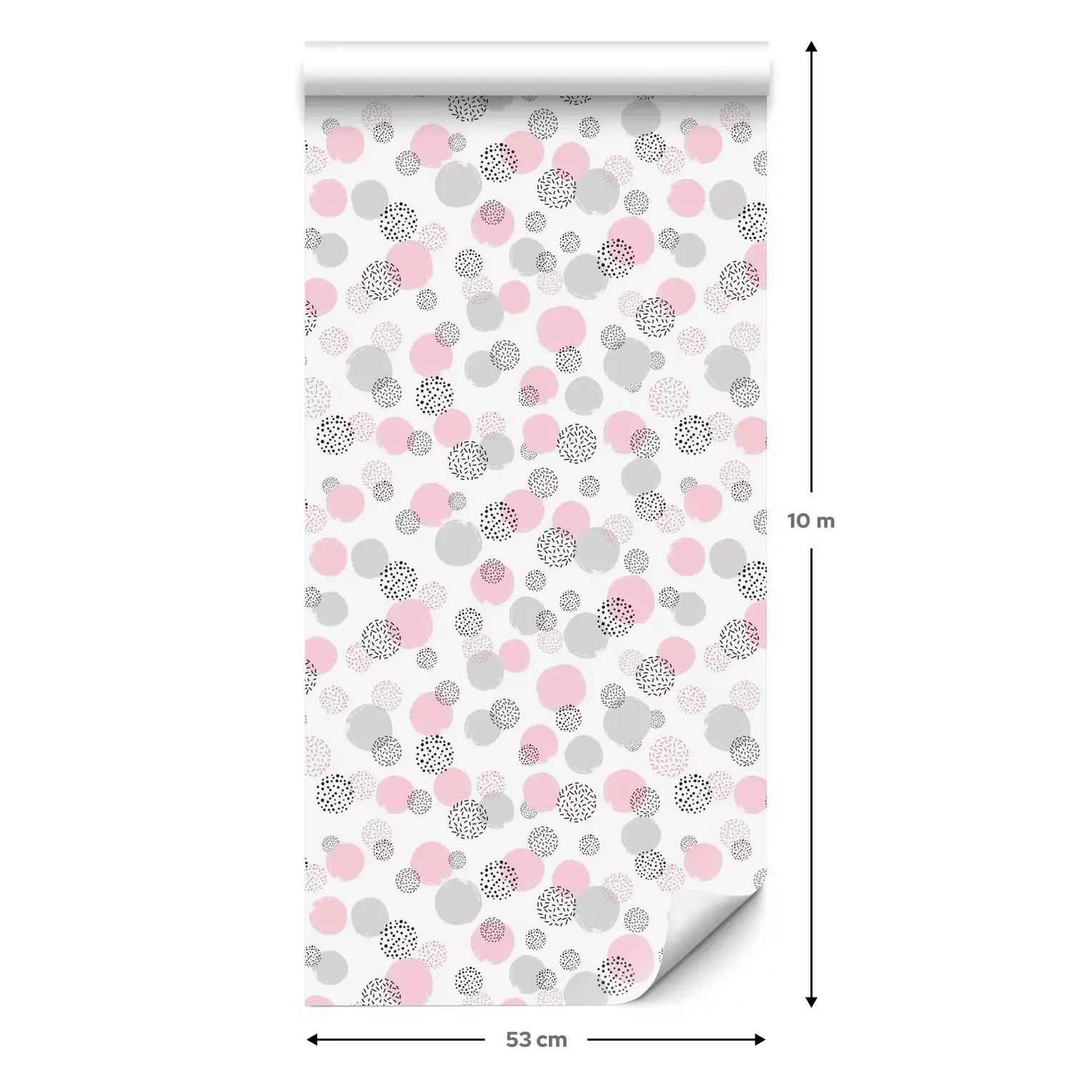 Eine Standard-Tapetenrolle hat die Maße 0,53 m x 10 m und deckt eine Wandfläche von etwa 5 m² ab.
