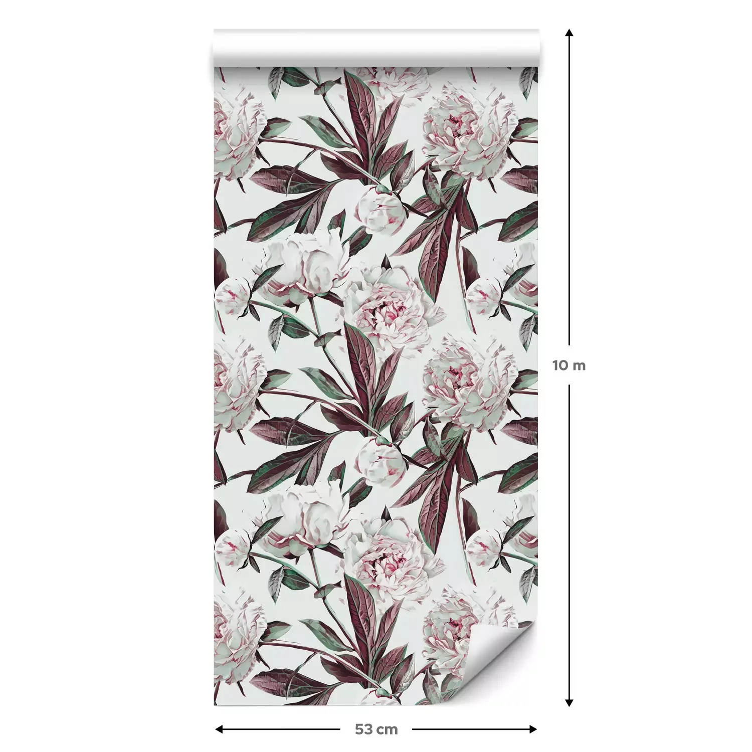 Eine Standard-Tapetenrolle hat die Maße 0,53 m x 10 m und deckt eine Wandfläche von etwa 5 m² ab.