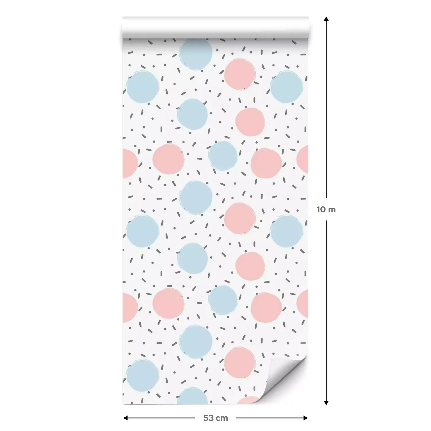 Eine Standard-Tapetenrolle hat die Maße 0,53 m x 10 m und deckt eine Wandfläche von etwa 5 m² ab.