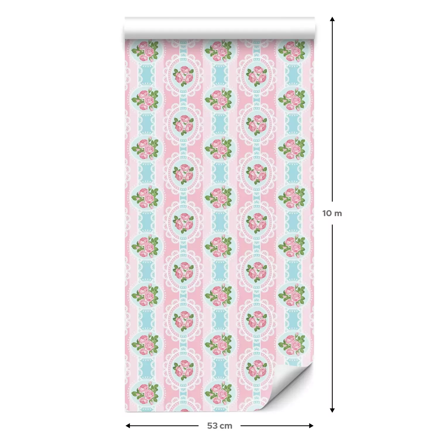 Eine Standard-Tapetenrolle hat die Maße 0,53 m x 10 m und deckt eine Wandfläche von etwa 5 m² ab.