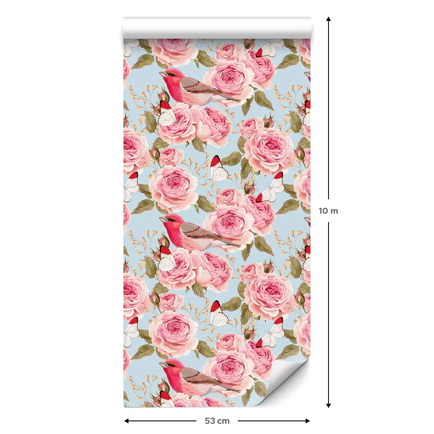 Eine Standard-Tapetenrolle hat die Maße 0,53 m x 10 m und deckt eine Wandfläche von etwa 5 m² ab.