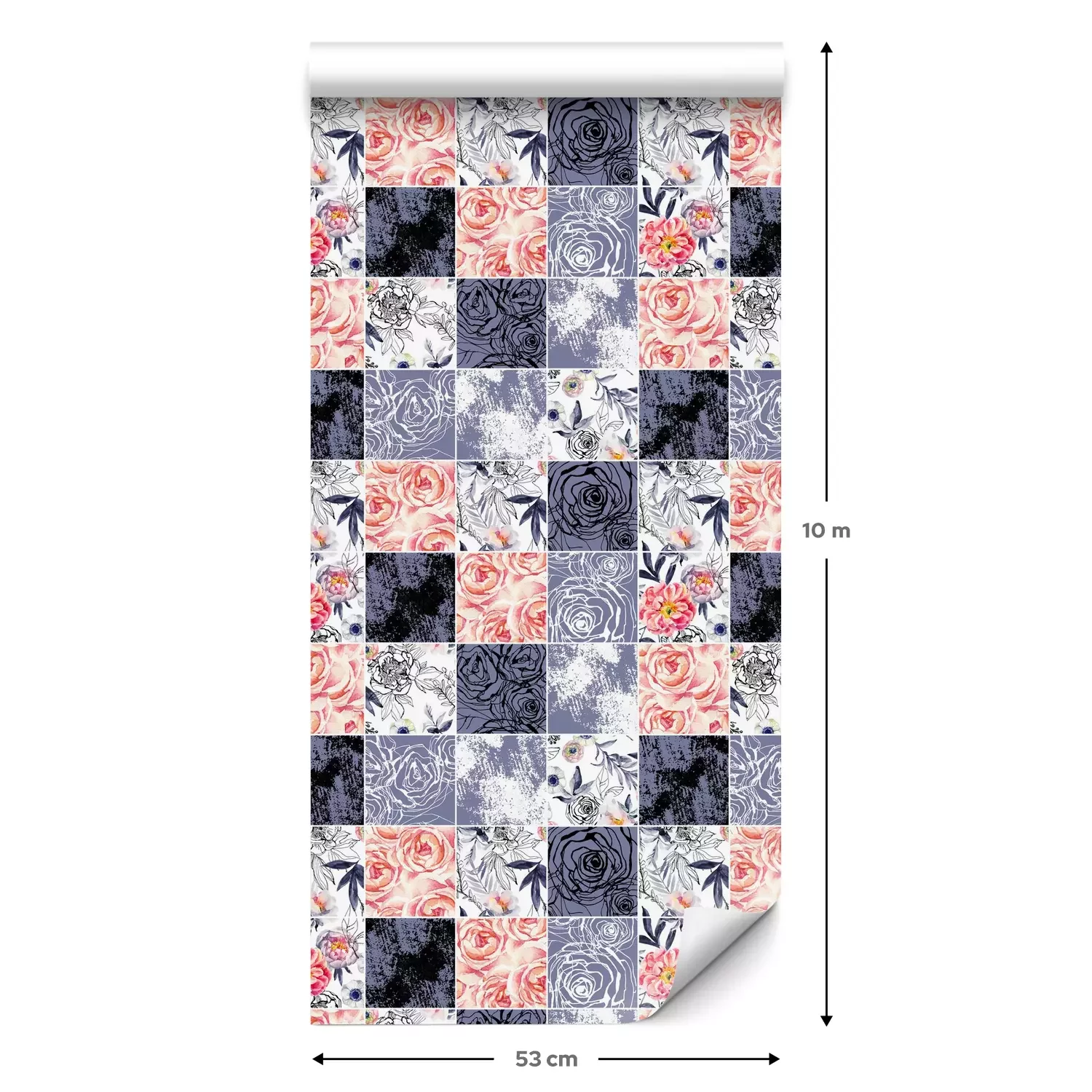 Eine Standard-Tapetenrolle hat die Maße 0,53 m x 10 m und deckt eine Wandfläche von etwa 5 m² ab.