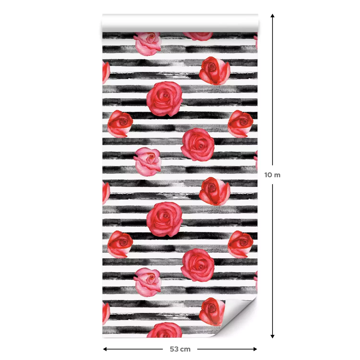 Eine Standard-Tapetenrolle hat die Maße 0,53 m x 10 m und deckt eine Wandfläche von etwa 5 m² ab.
