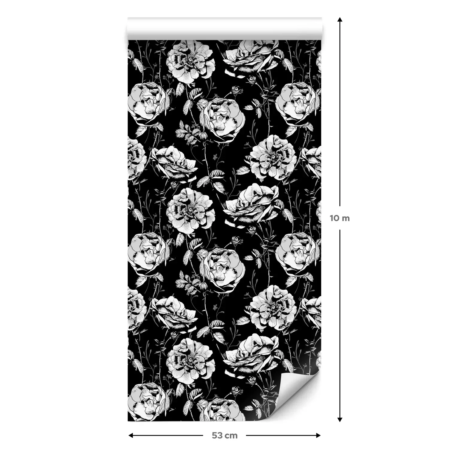 Eine Standard-Tapetenrolle hat die Maße 0,53 m x 10 m und deckt eine Wandfläche von etwa 5 m² ab.