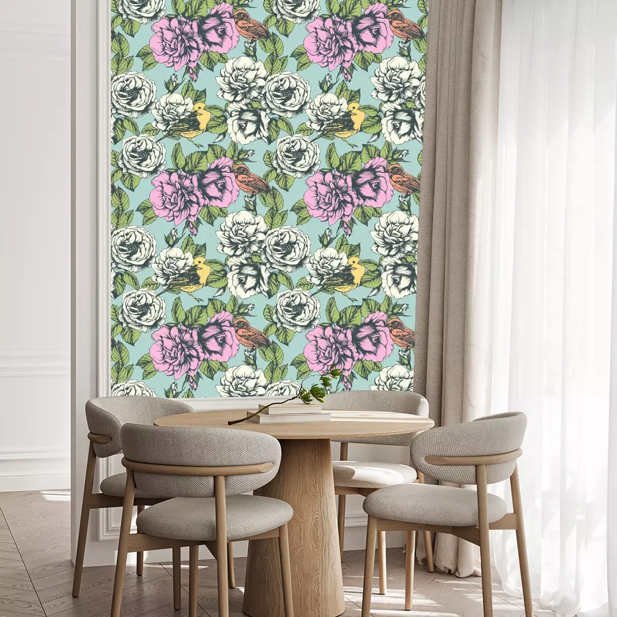 Eine Standard-Tapetenrolle hat die Maße 0,53 m x 10 m und deckt eine Wandfläche von etwa 5 m² ab.