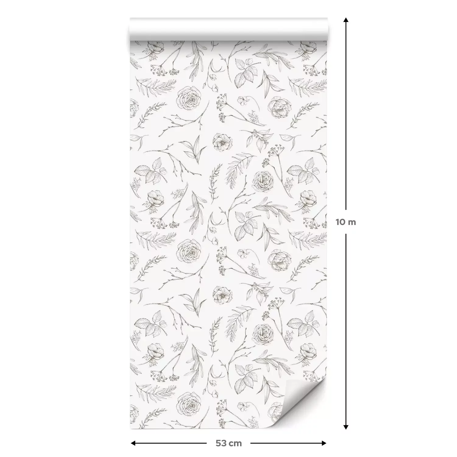 Eine Standard-Tapetenrolle hat die Maße 0,53 m x 10 m und deckt eine Wandfläche von etwa 5 m² ab.