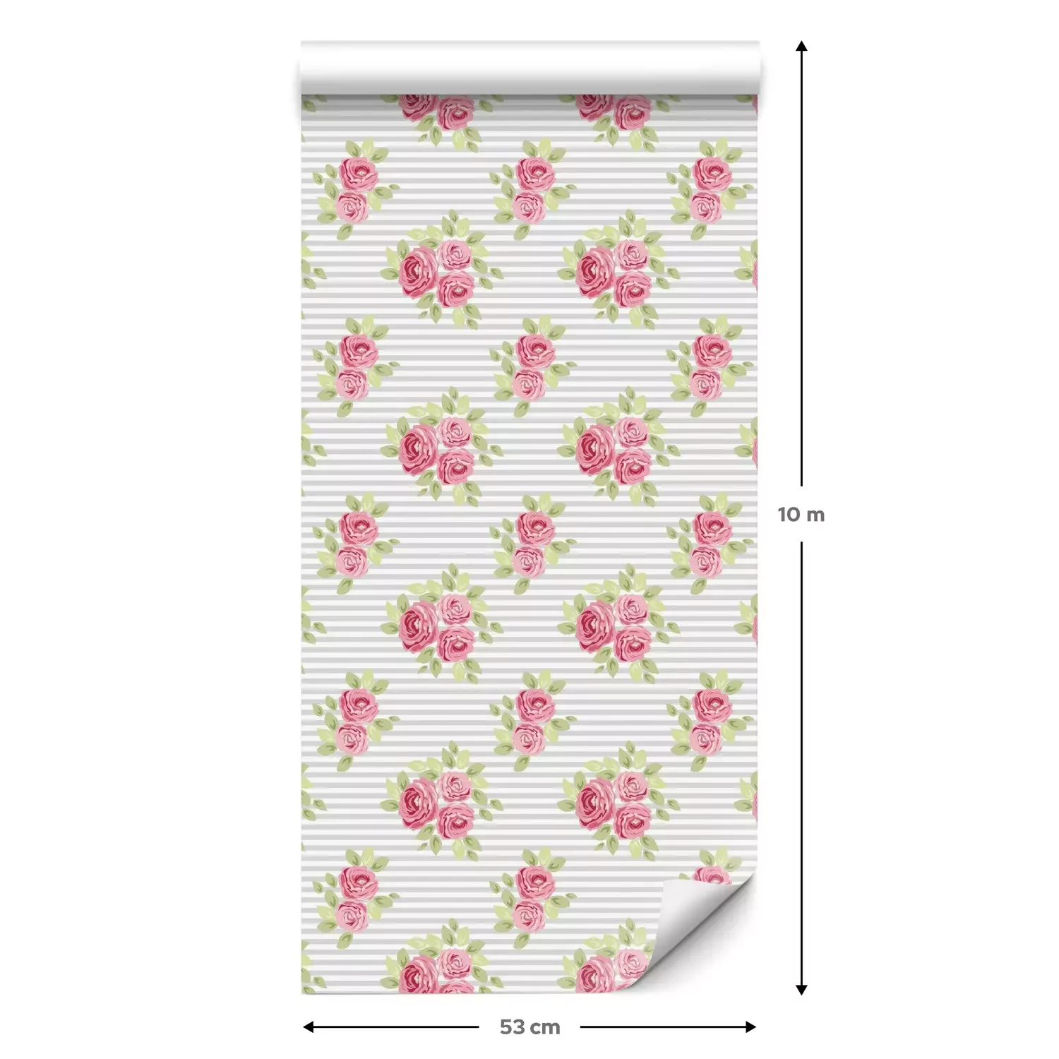 Eine Standard-Tapetenrolle hat die Maße 0,53 m x 10 m und deckt eine Wandfläche von etwa 5 m² ab.