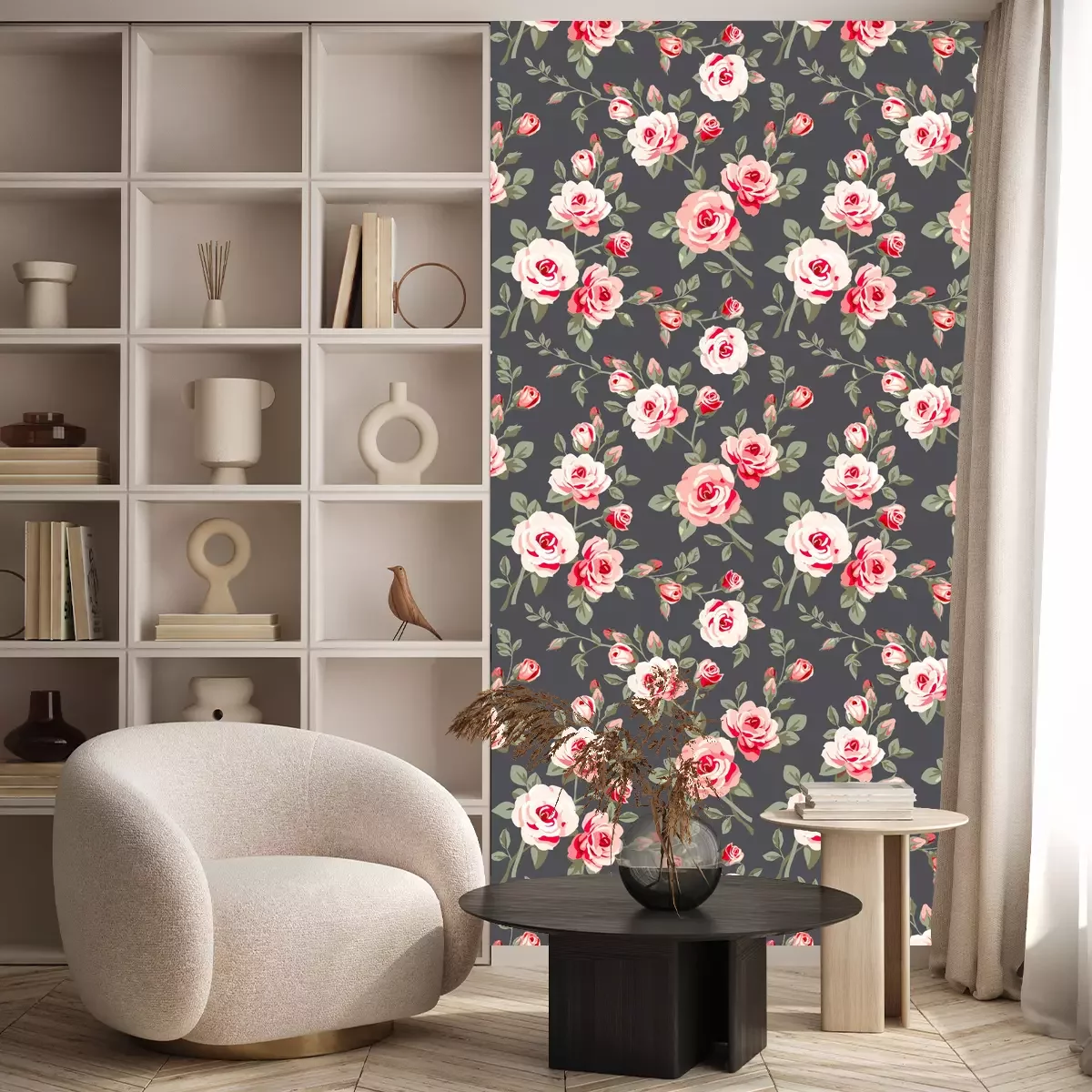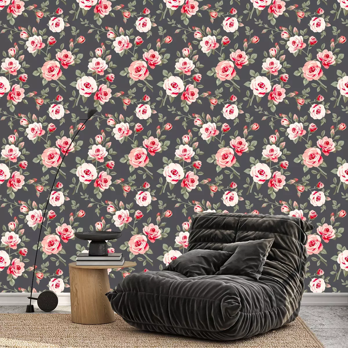 Retro-Rosen mit BlätternTapete
