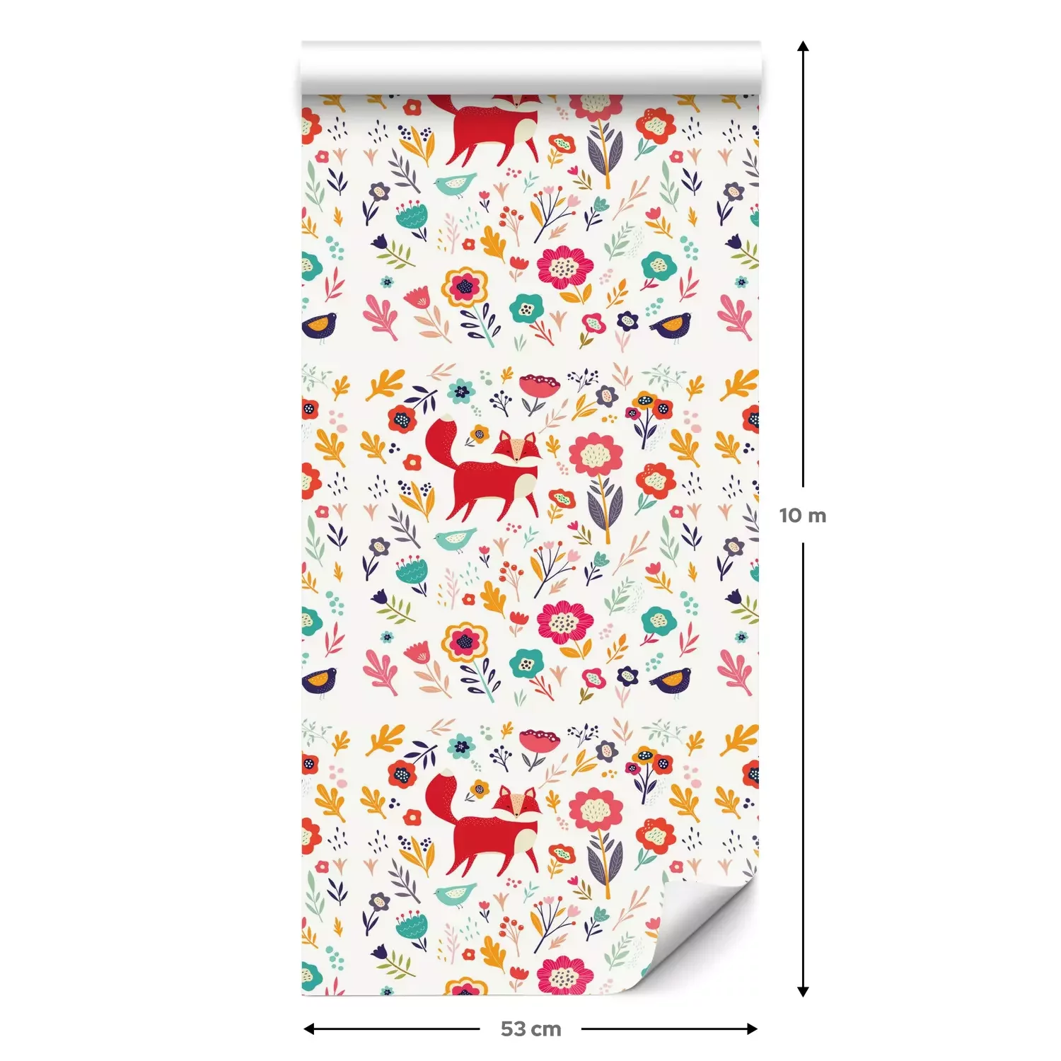 Eine Standard-Tapetenrolle hat die Maße 0,53 m x 10 m und deckt eine Wandfläche von etwa 5 m² ab.