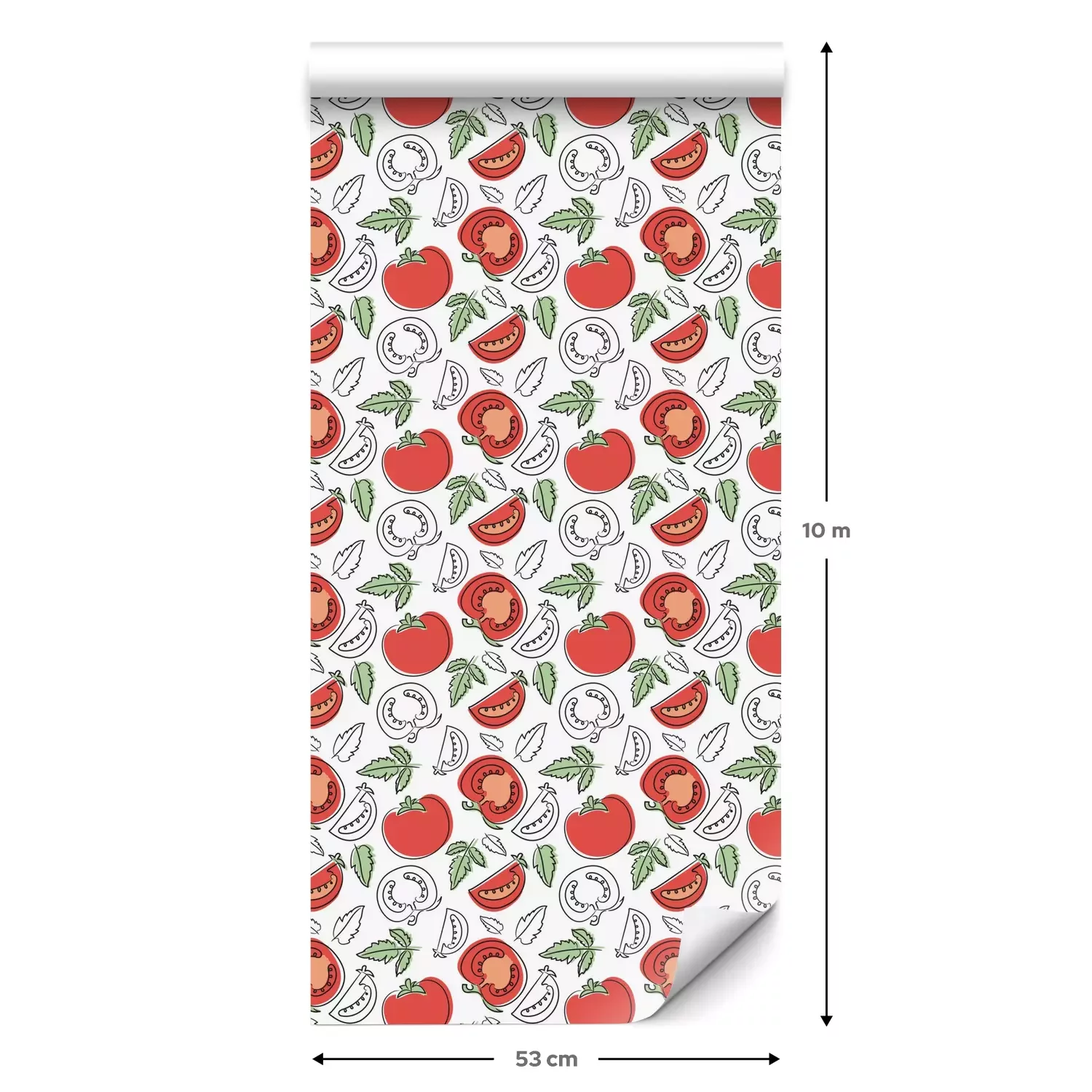 Eine Standard-Tapetenrolle hat die Maße 0,53 m x 10 m und deckt eine Wandfläche von etwa 5 m² ab.