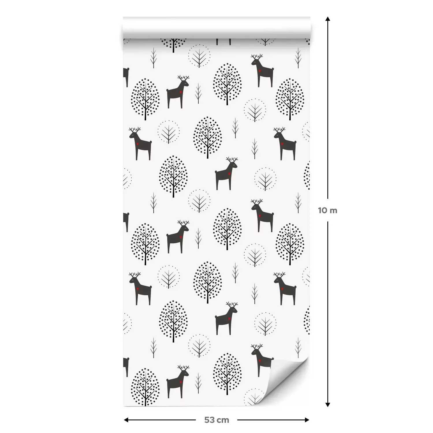 Eine Standard-Tapetenrolle hat die Maße 0,53 m x 10 m und deckt eine Wandfläche von etwa 5 m² ab.