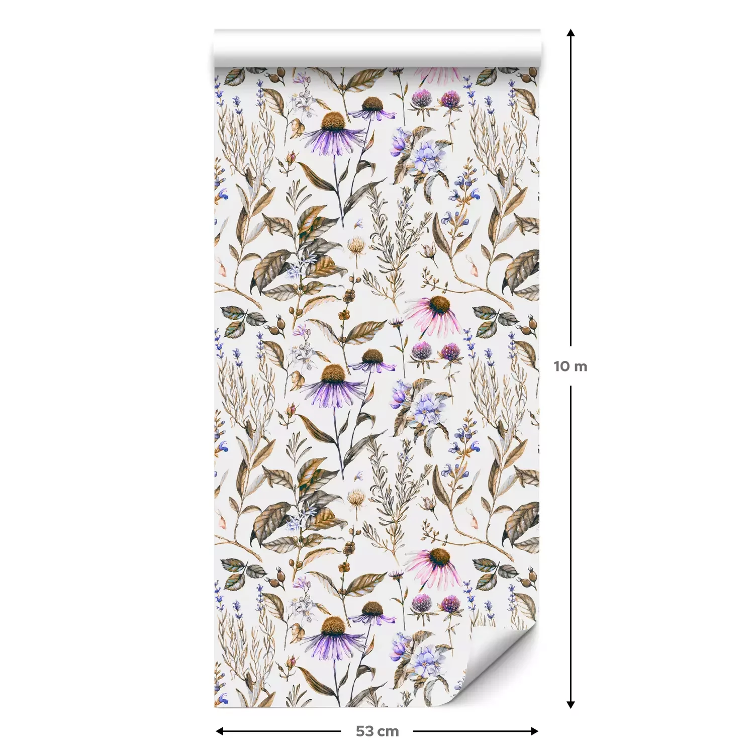 Eine Standard-Tapetenrolle hat die Maße 0,53 m x 10 m und deckt eine Wandfläche von etwa 5 m² ab.