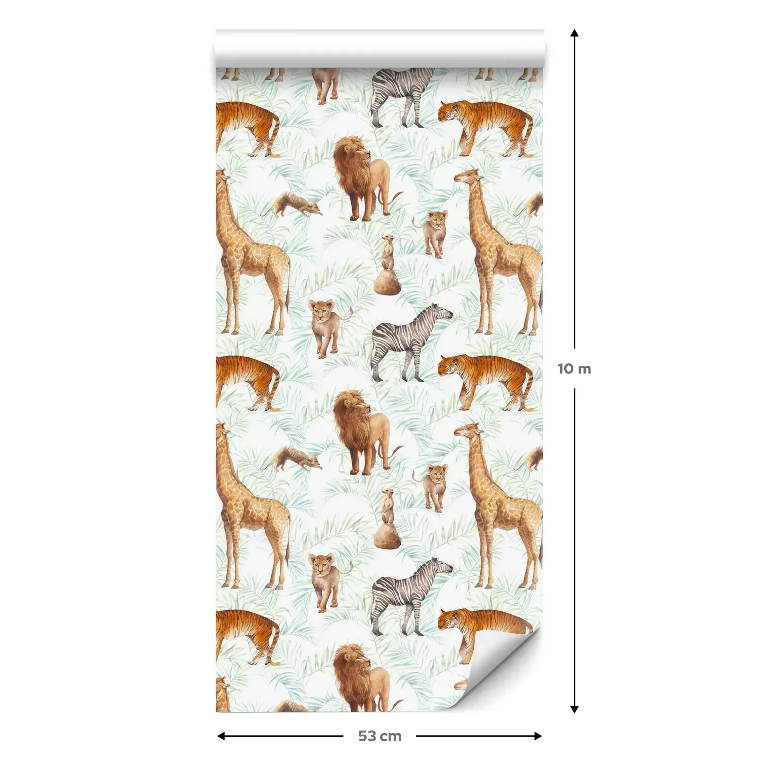 Eine Standard-Tapetenrolle hat die Maße 0,53 m x 10 m und deckt eine Wandfläche von etwa 5 m² ab.