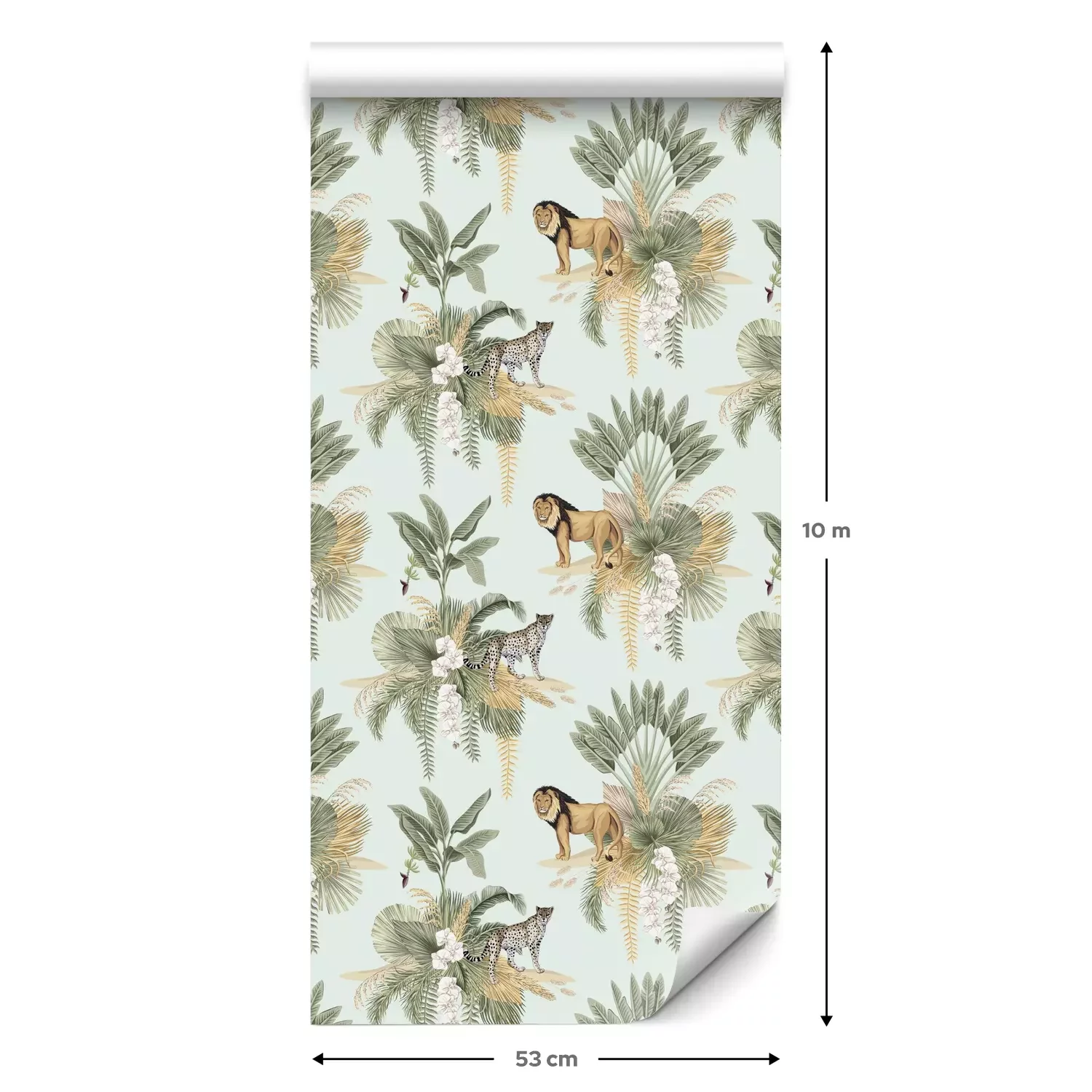 Eine Standard-Tapetenrolle hat die Maße 0,53 m x 10 m und deckt eine Wandfläche von etwa 5 m² ab.