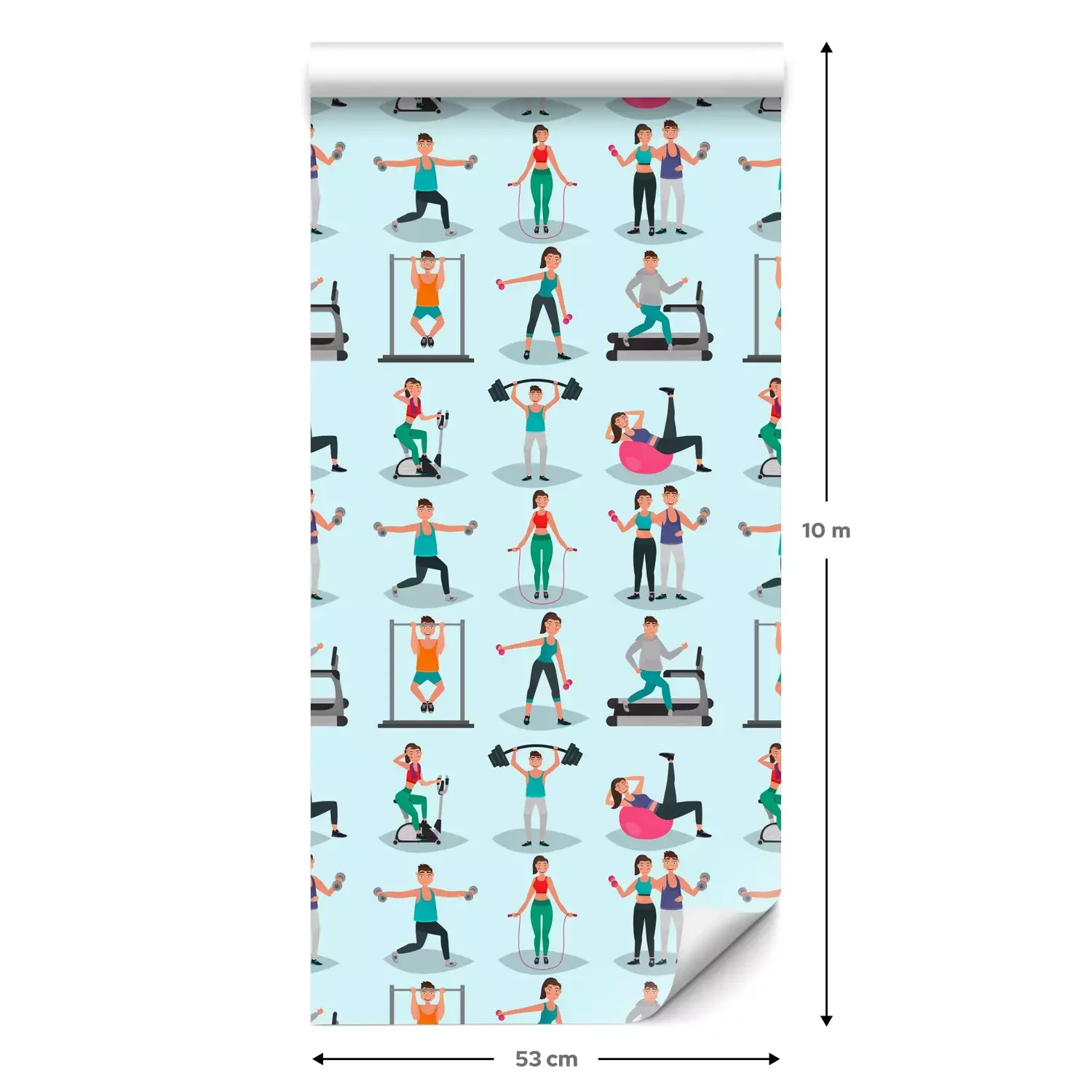 Eine Standard-Tapetenrolle hat die Maße 0,53 m x 10 m und deckt eine Wandfläche von etwa 5 m² ab.