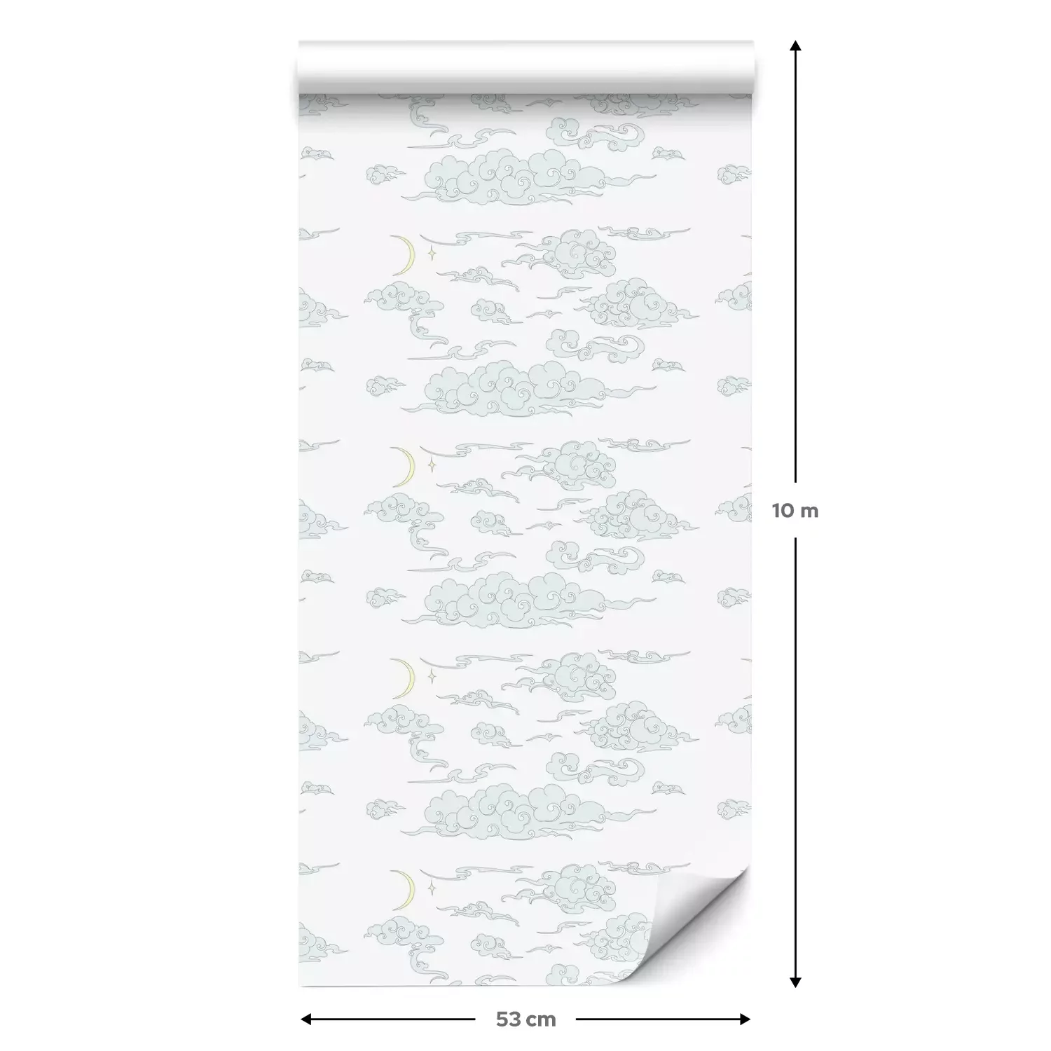 Eine Standard-Tapetenrolle hat die Maße 0,53 m x 10 m und deckt eine Wandfläche von etwa 5 m² ab.