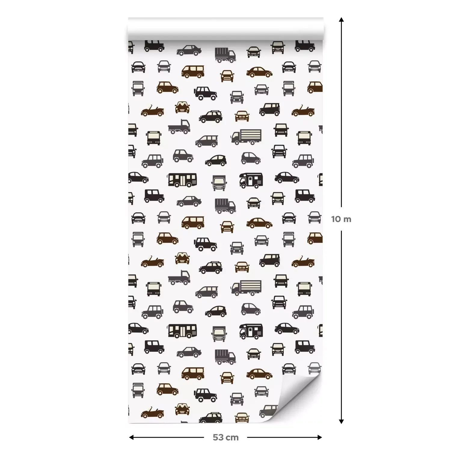 Eine Standard-Tapetenrolle hat die Maße 0,53 m x 10 m und deckt eine Wandfläche von etwa 5 m² ab.