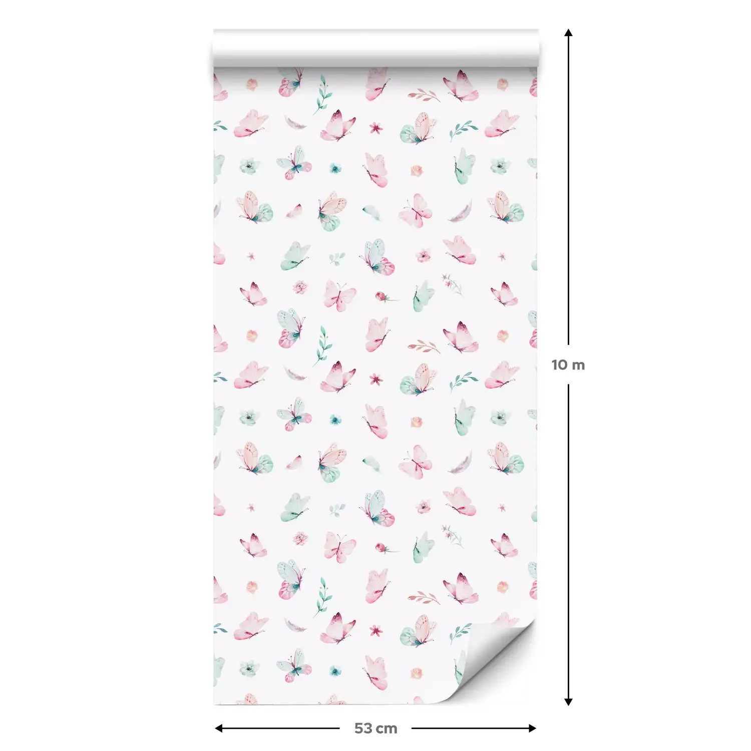 Eine Standard-Tapetenrolle hat die Maße 0,53 m x 10 m und deckt eine Wandfläche von etwa 5 m² ab.