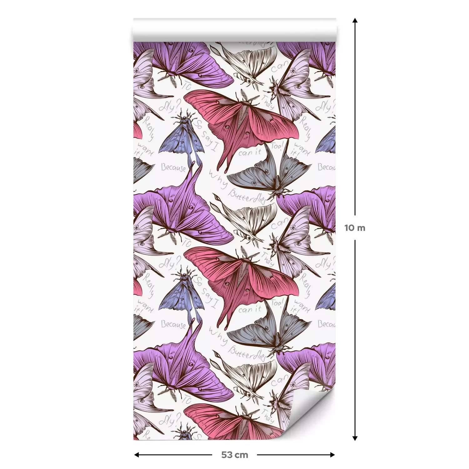 Eine Standard-Tapetenrolle hat die Maße 0,53 m x 10 m und deckt eine Wandfläche von etwa 5 m² ab.