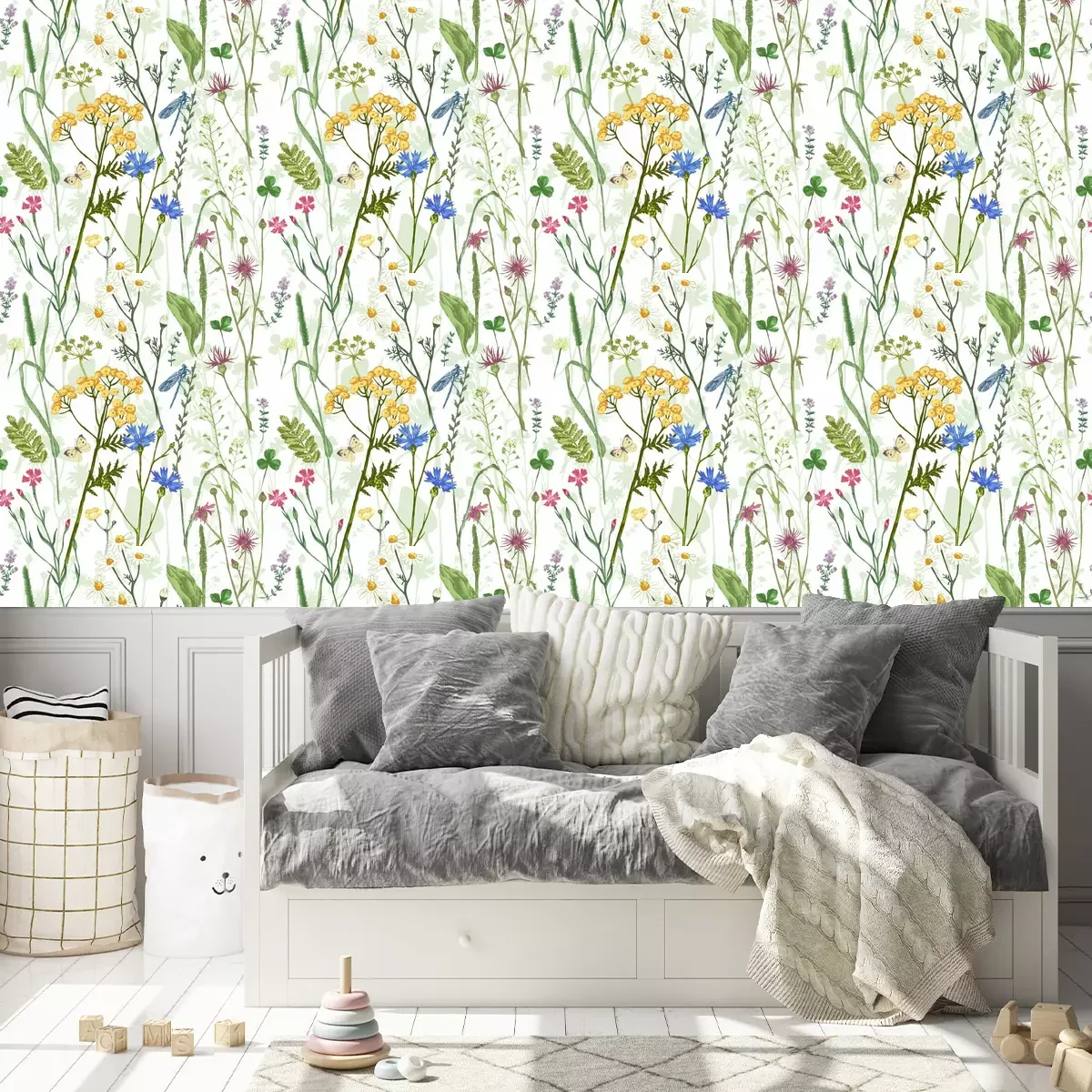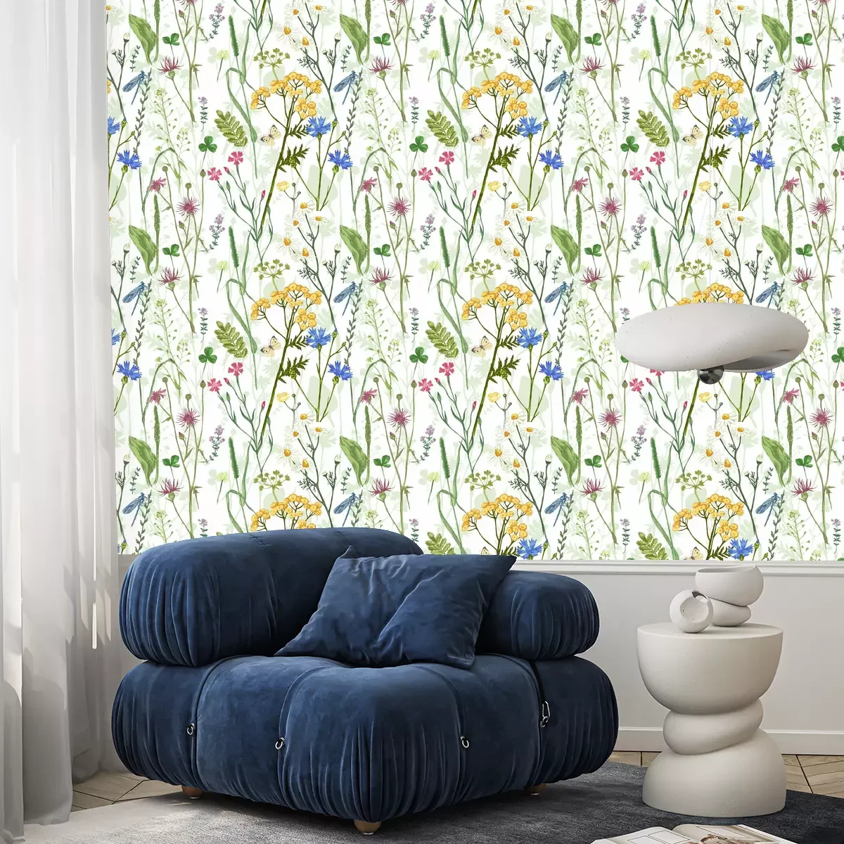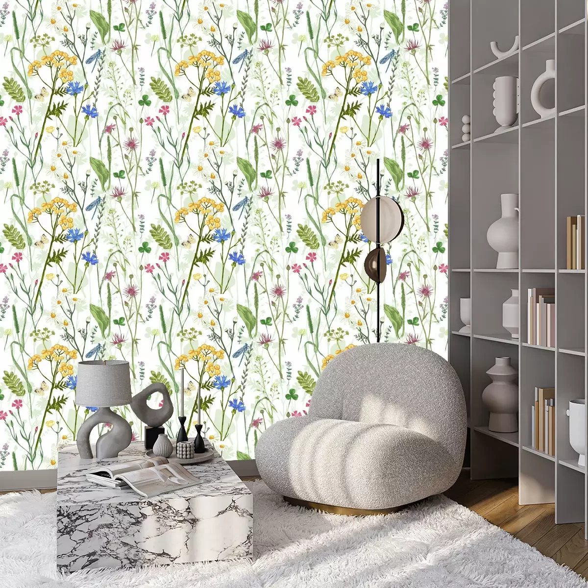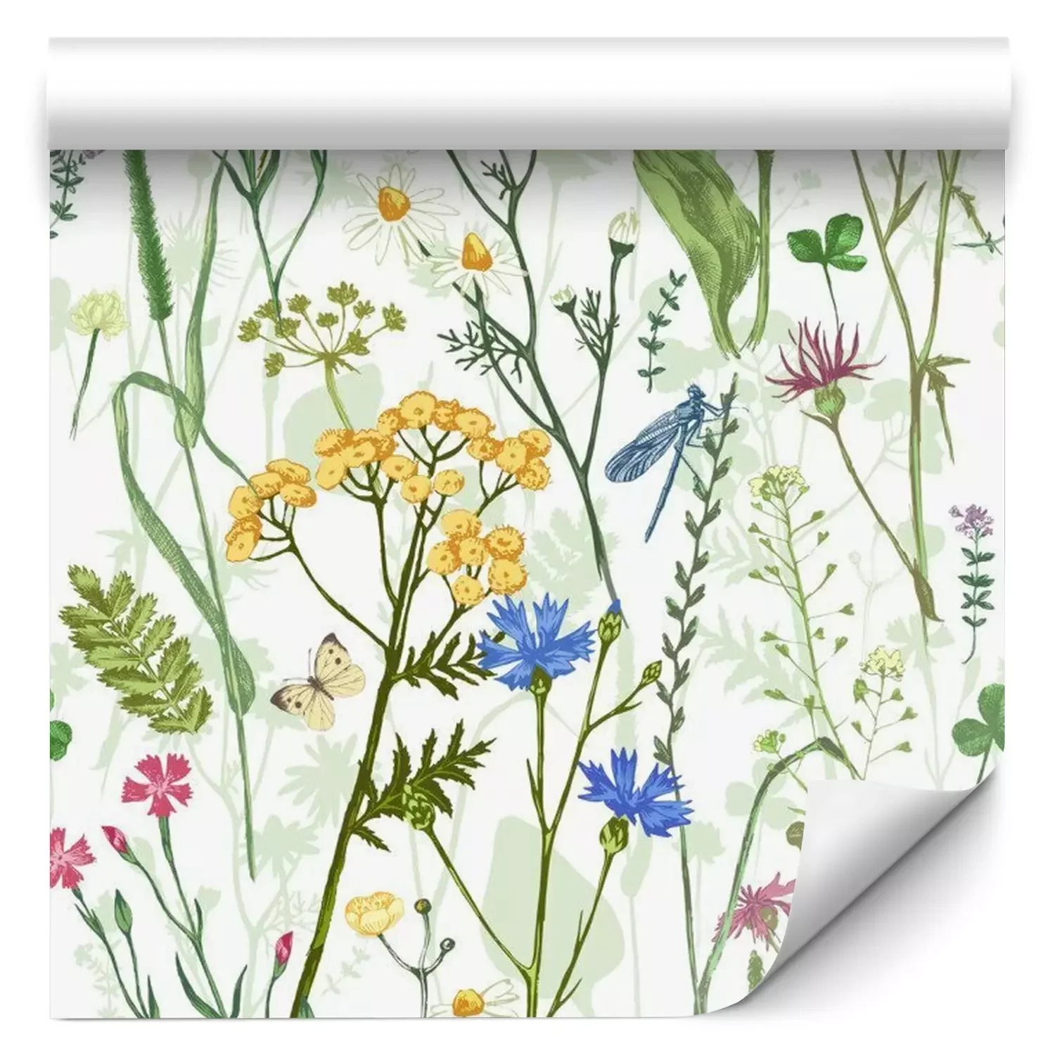 Tapete Schmetterlinge und Libellen auf einer Blumenwiese