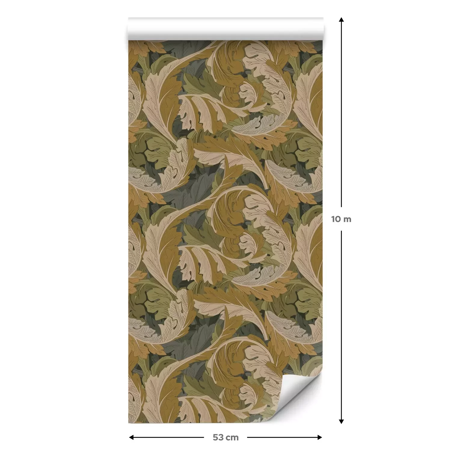 Eine Standard-Tapetenrolle hat die Maße 0,53 m x 10 m und deckt eine Wandfläche von etwa 5 m² ab.
