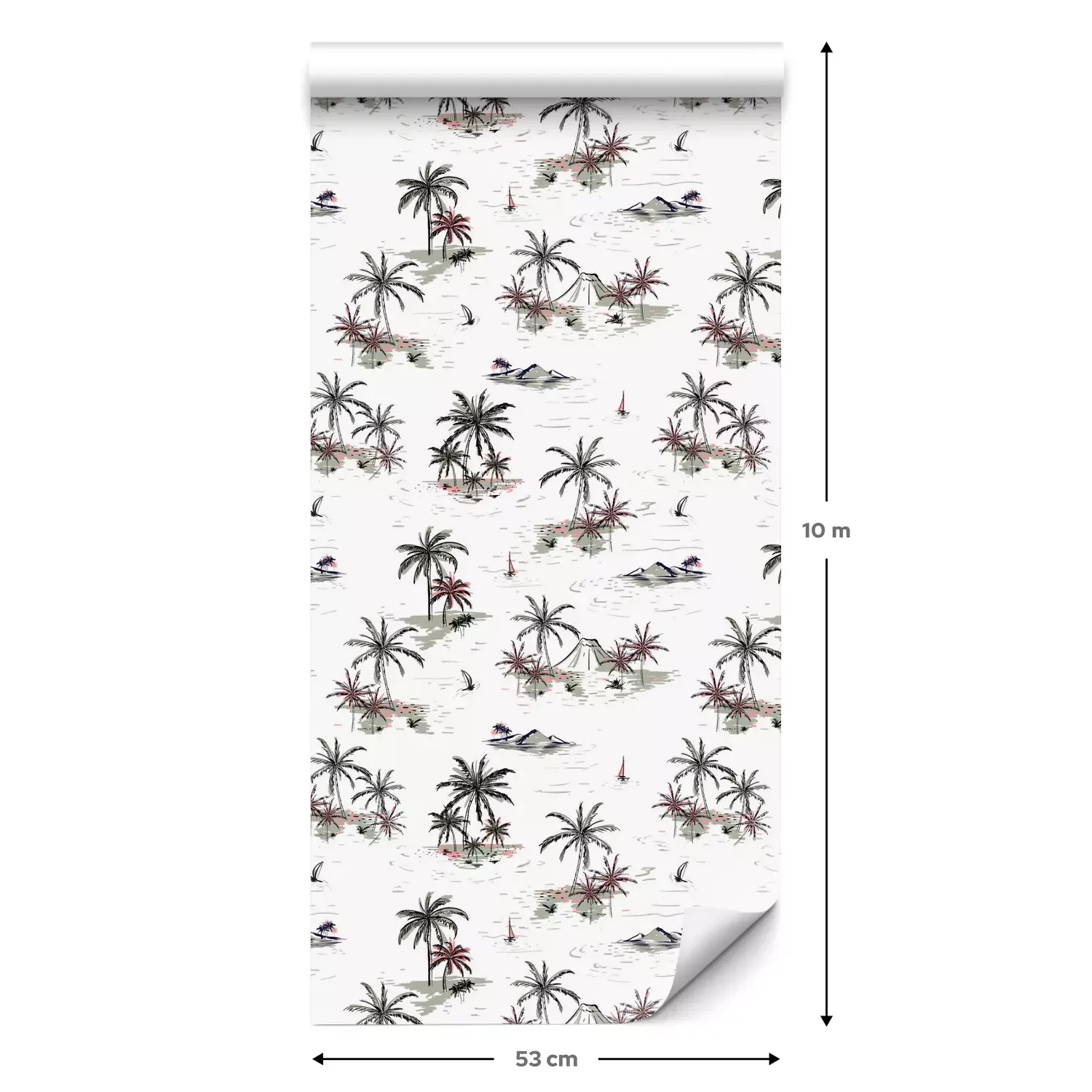 Eine Standard-Tapetenrolle hat die Maße 0,53 m x 10 m und deckt eine Wandfläche von etwa 5 m² ab.
