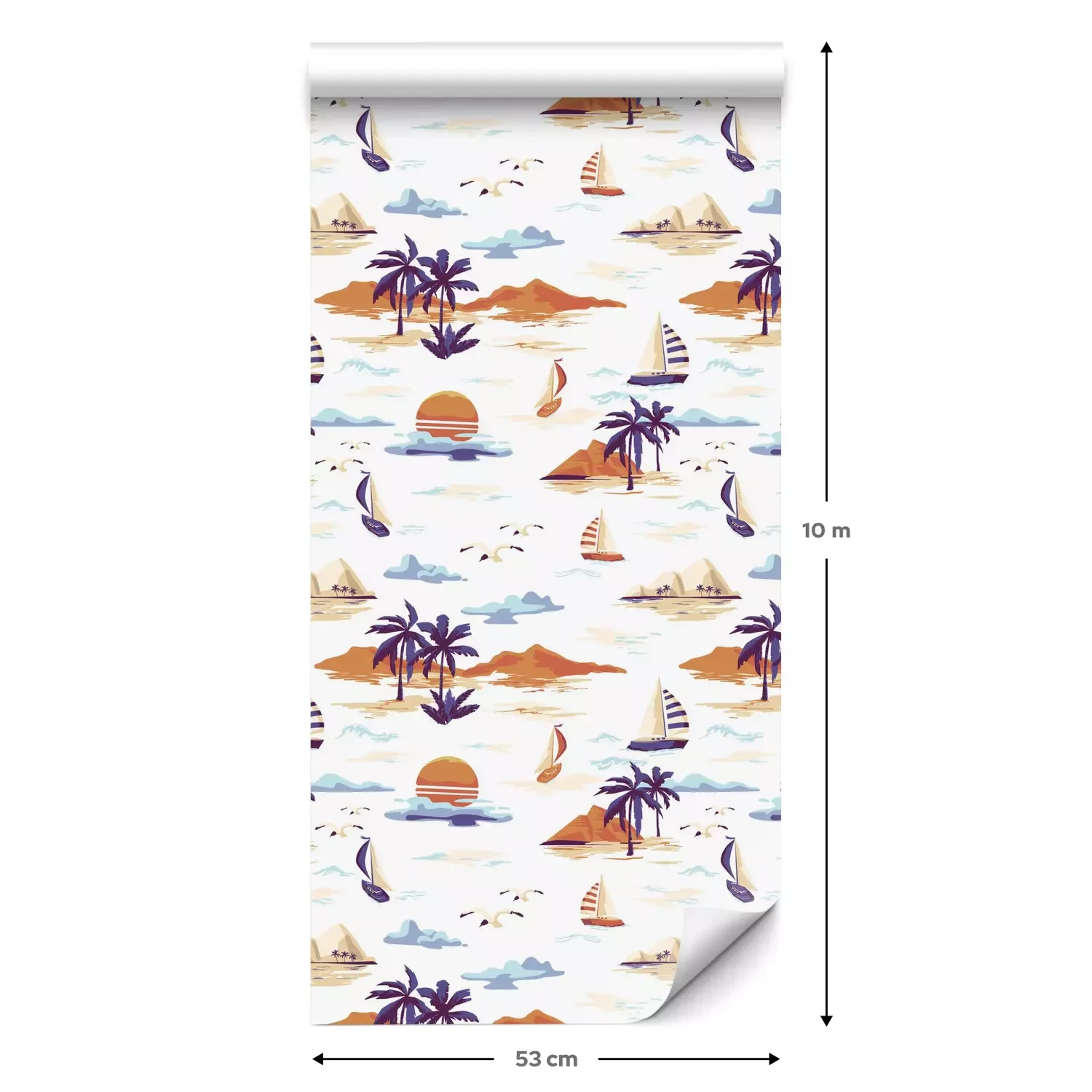 Eine Standard-Tapetenrolle hat die Maße 0,53 m x 10 m und deckt eine Wandfläche von etwa 5 m² ab.