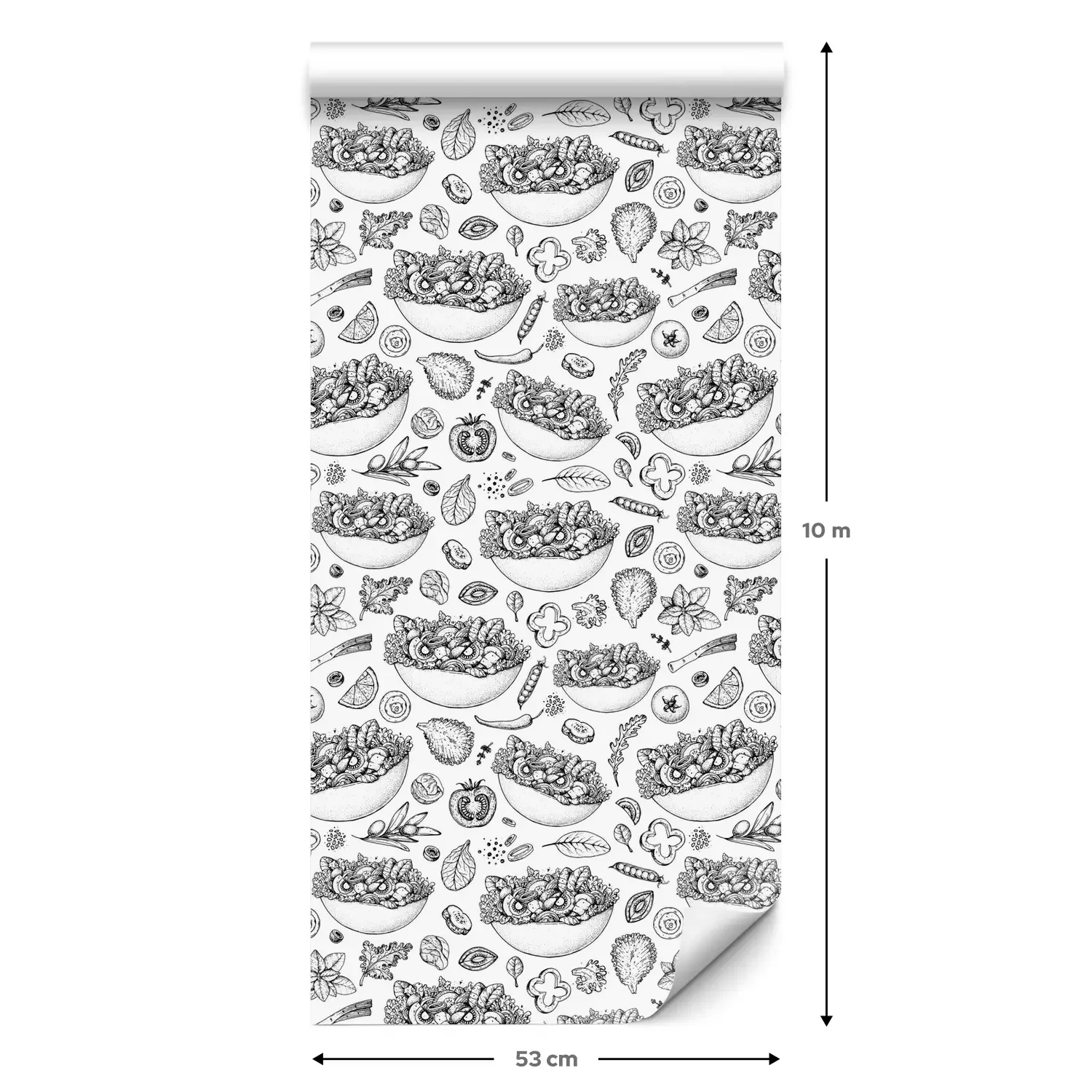 Eine Standard-Tapetenrolle hat die Maße 0,53 m x 10 m und deckt eine Wandfläche von etwa 5 m² ab.