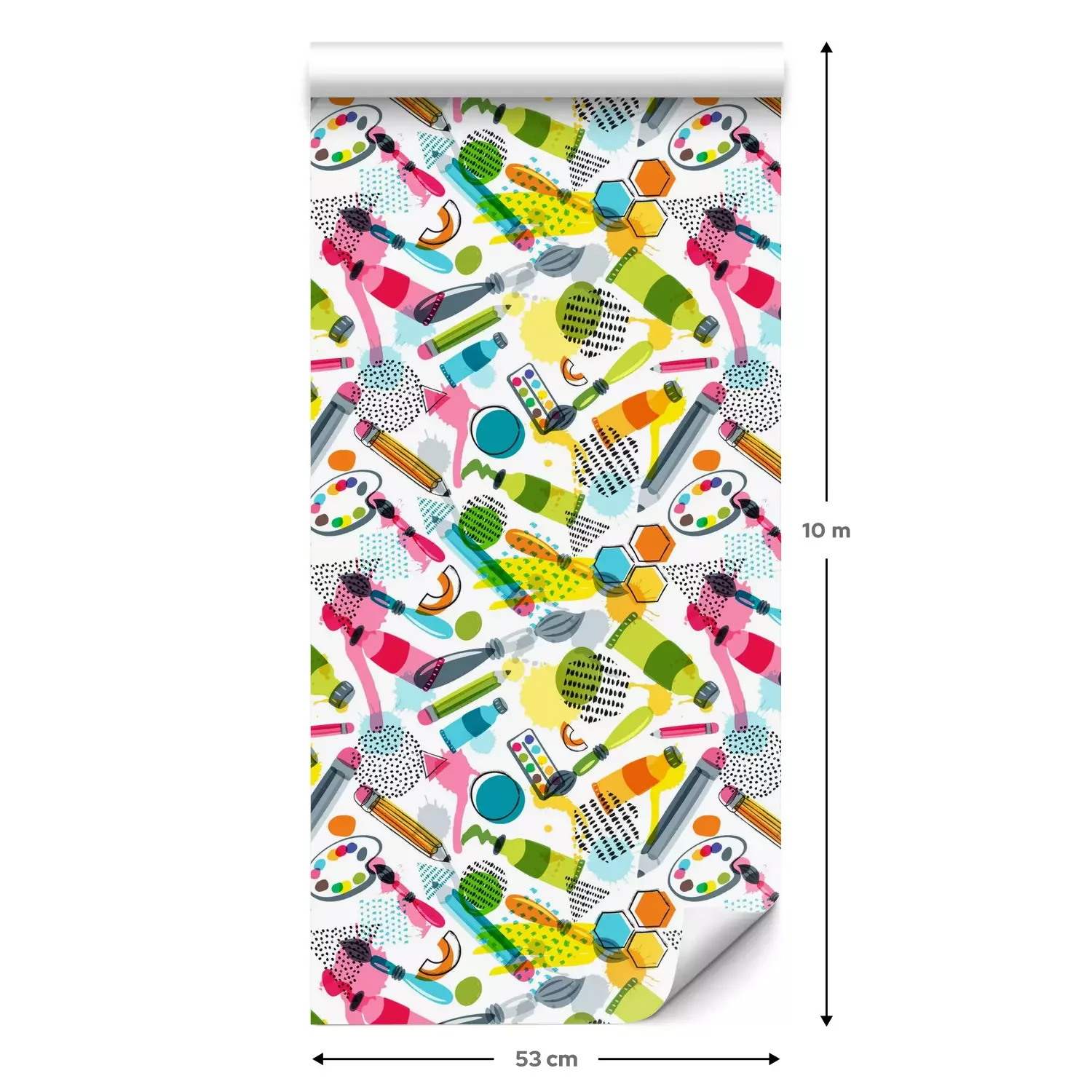 Eine Standard-Tapetenrolle hat die Maße 0,53 m x 10 m und deckt eine Wandfläche von etwa 5 m² ab.