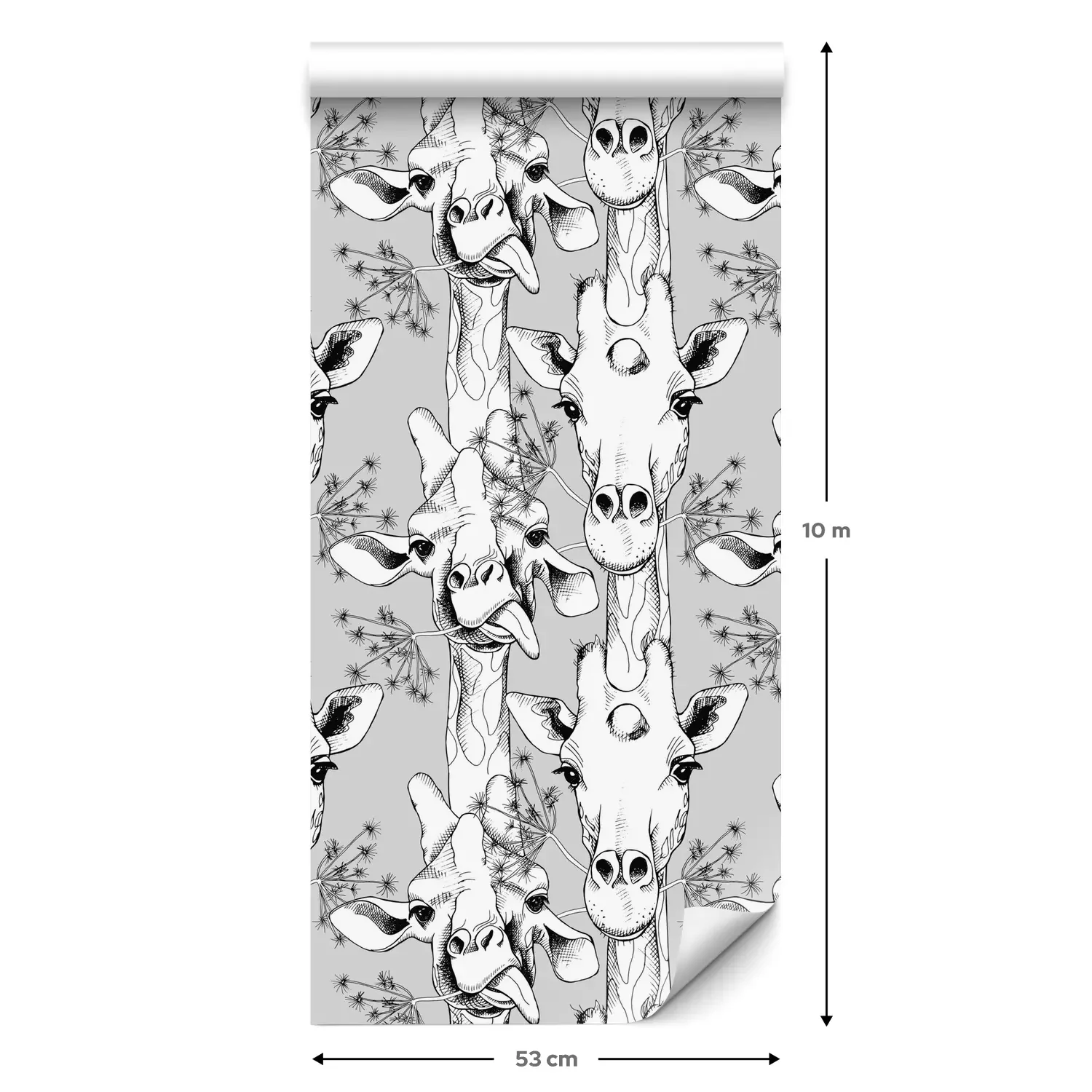 Eine Standard-Tapetenrolle hat die Maße 0,53 m x 10 m und deckt eine Wandfläche von etwa 5 m² ab.