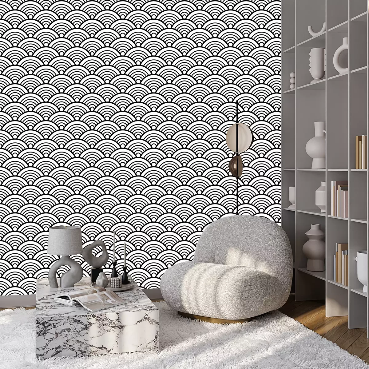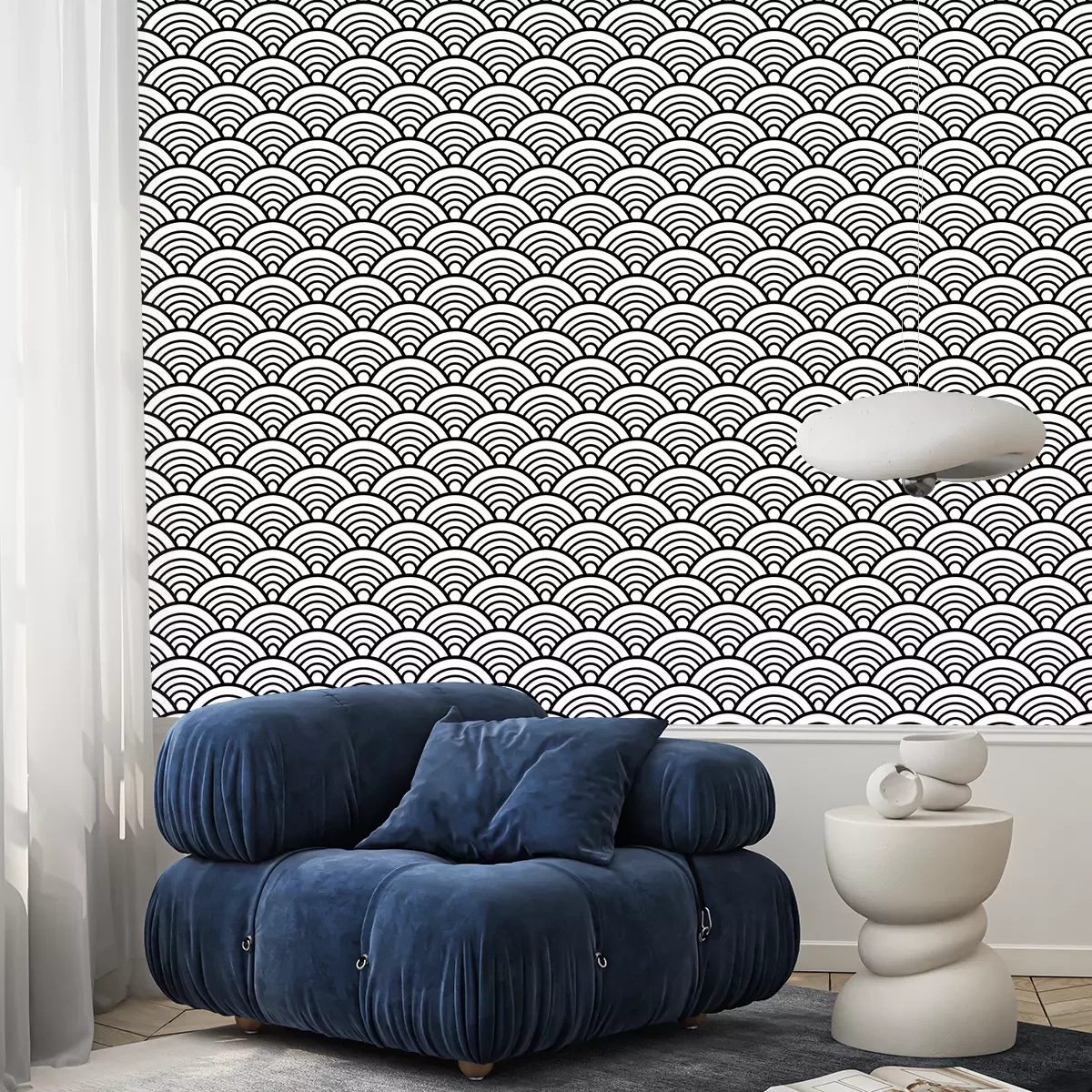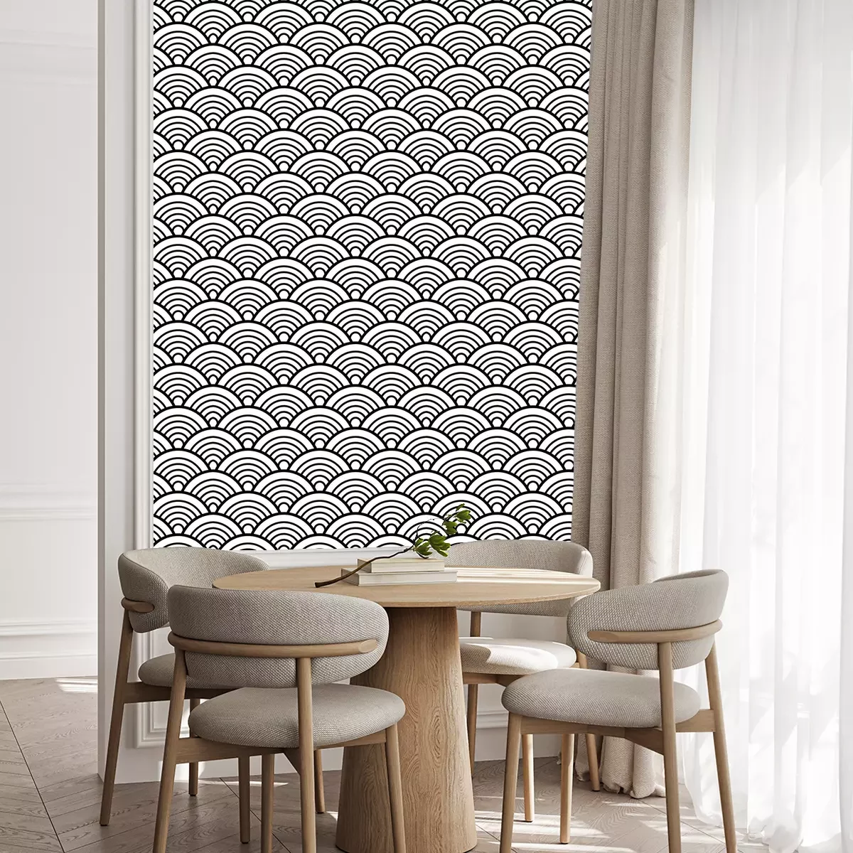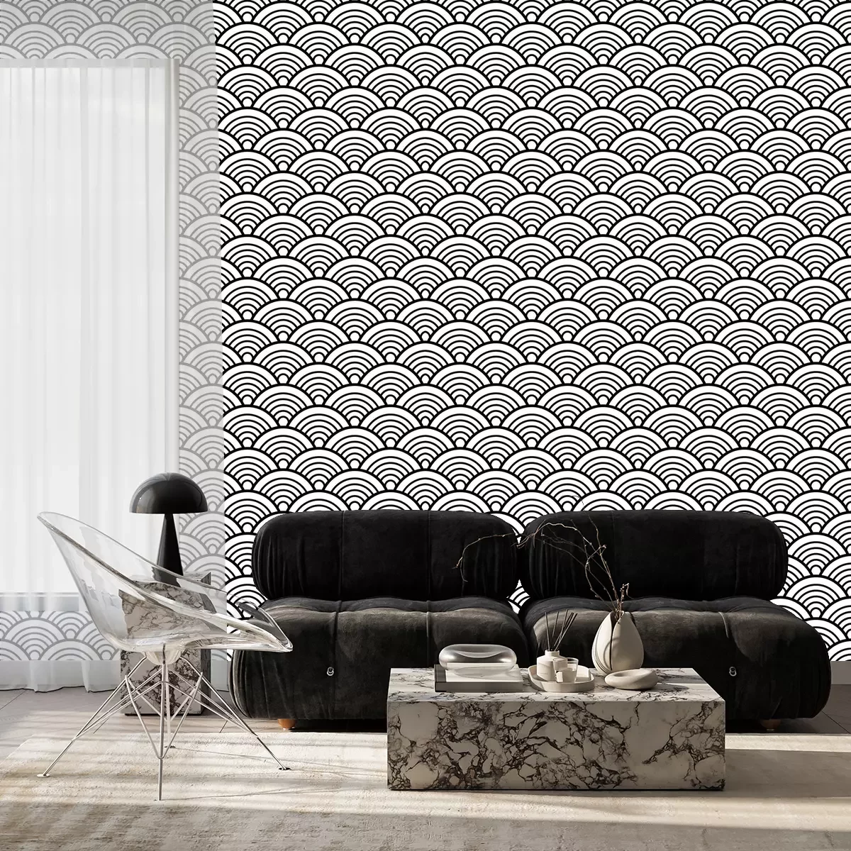 Tapete Schwarz-weiße symmetrische Wellen