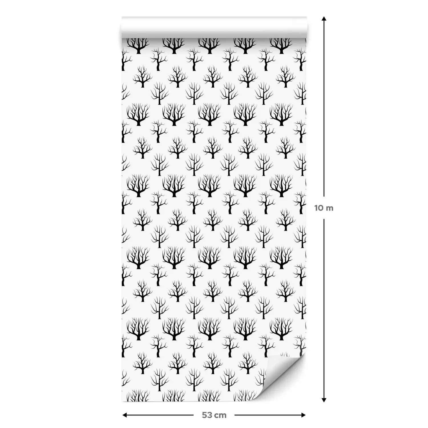 Eine Standard-Tapetenrolle hat die Maße 0,53 m x 10 m und deckt eine Wandfläche von etwa 5 m² ab.