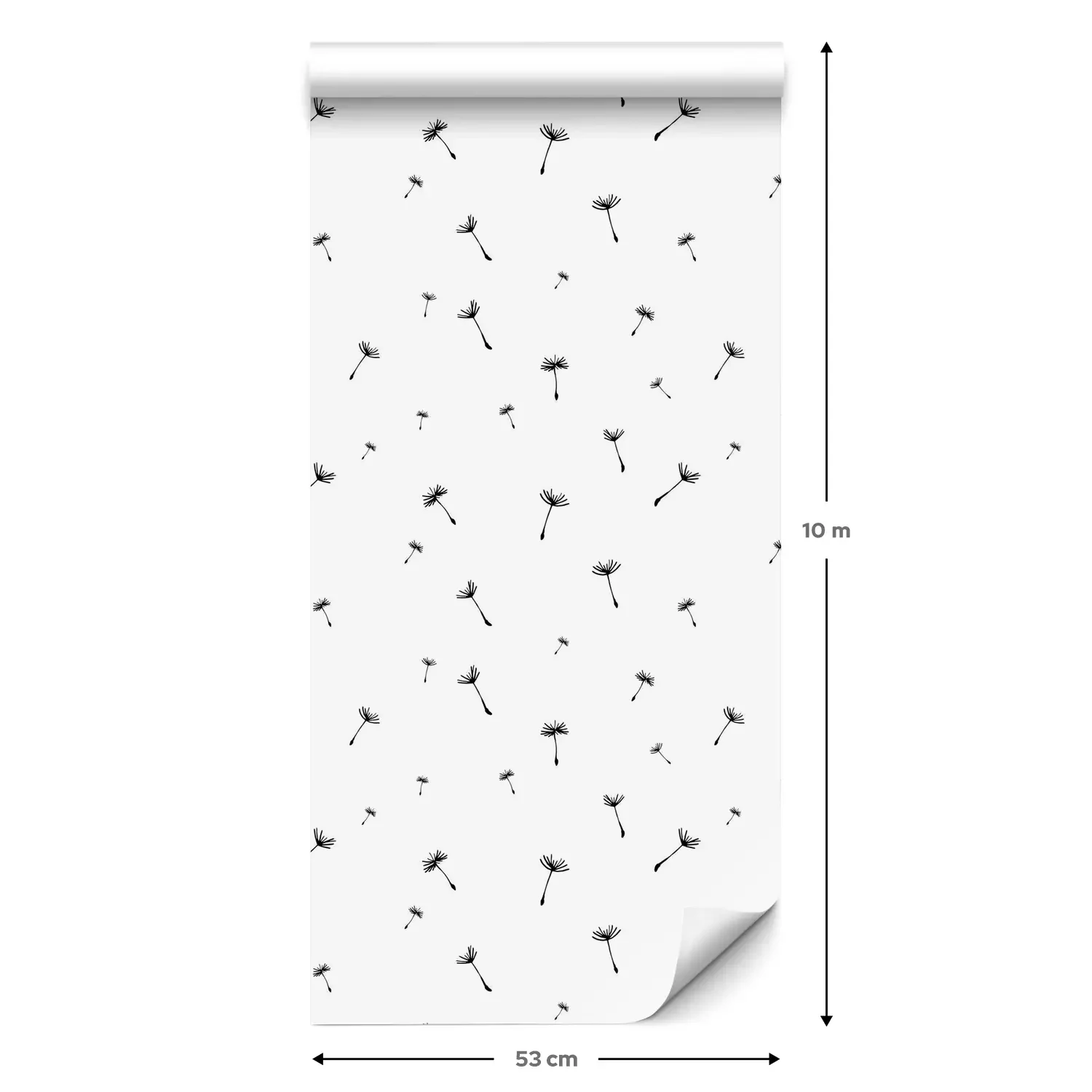 Eine Standard-Tapetenrolle hat die Maße 0,53 m x 10 m und deckt eine Wandfläche von etwa 5 m² ab.