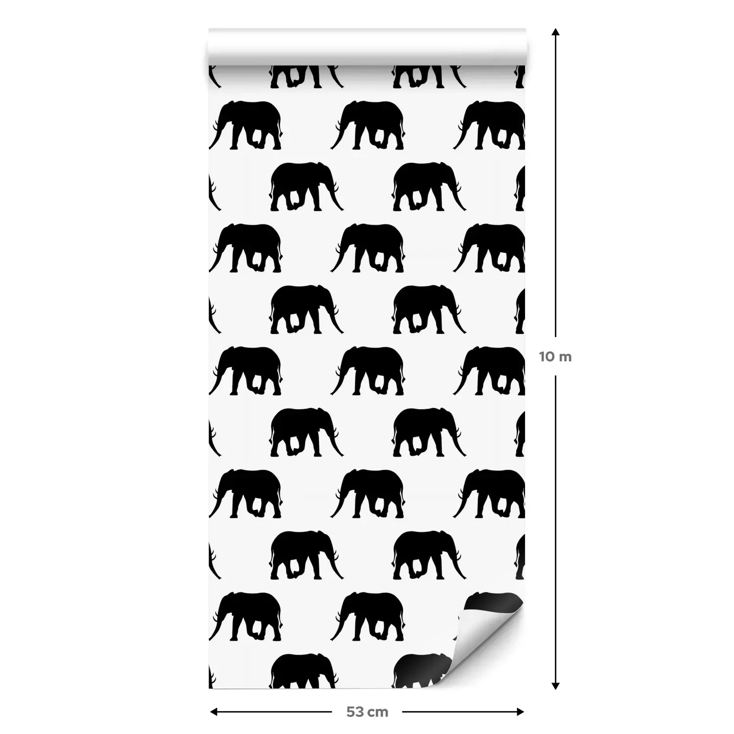 Eine Standard-Tapetenrolle hat die Maße 0,53 m x 10 m und deckt eine Wandfläche von etwa 5 m² ab.