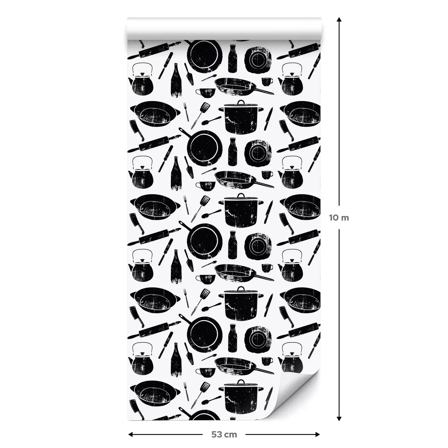 Eine Standard-Tapetenrolle hat die Maße 0,53 m x 10 m und deckt eine Wandfläche von etwa 5 m² ab.