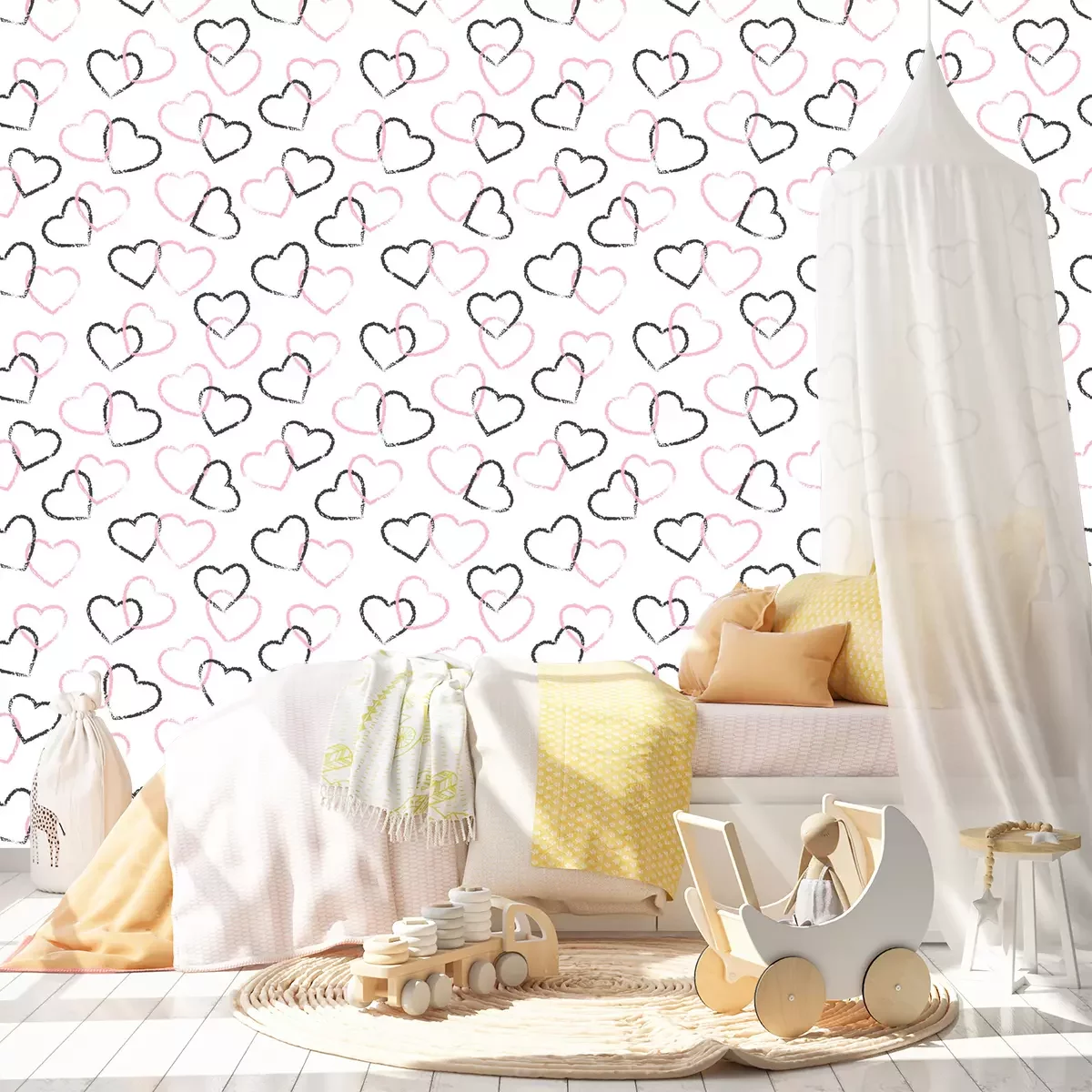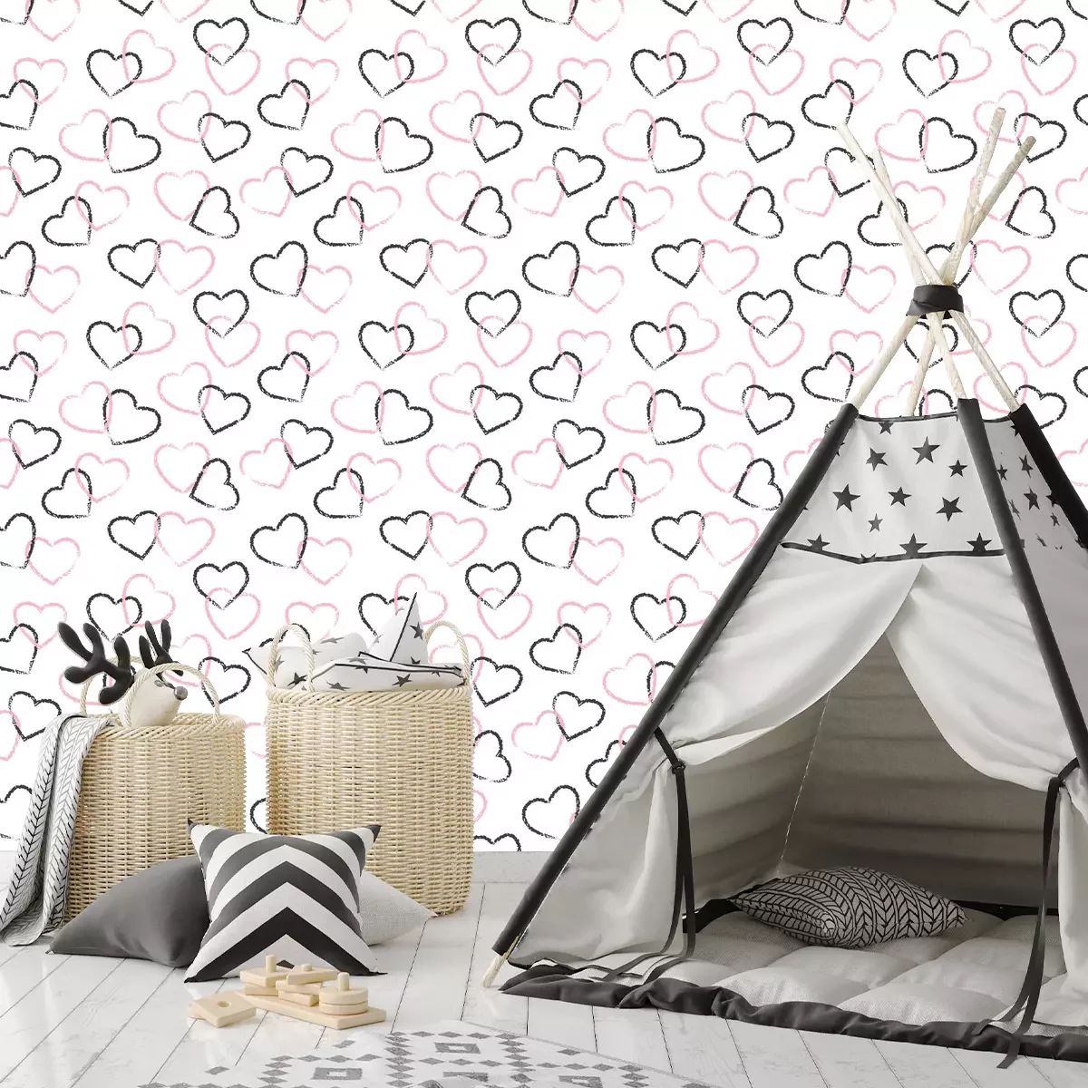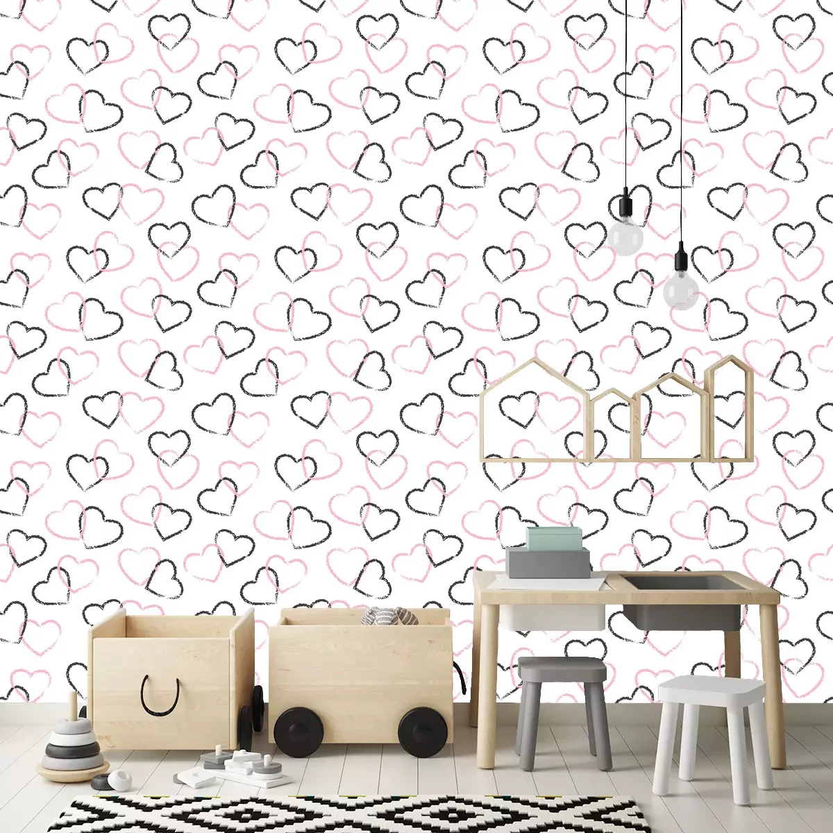 Mit Buntstift gemalte HerzenTapete