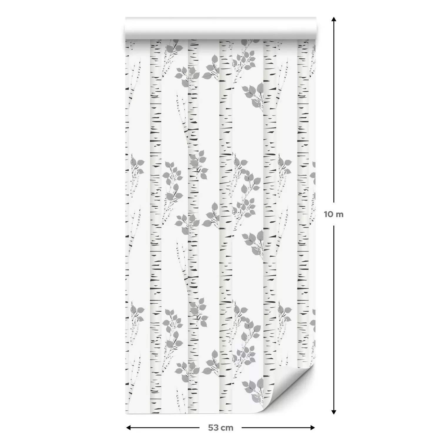 Eine Standard-Tapetenrolle hat die Maße 0,53 m x 10 m und deckt eine Wandfläche von etwa 5 m² ab.