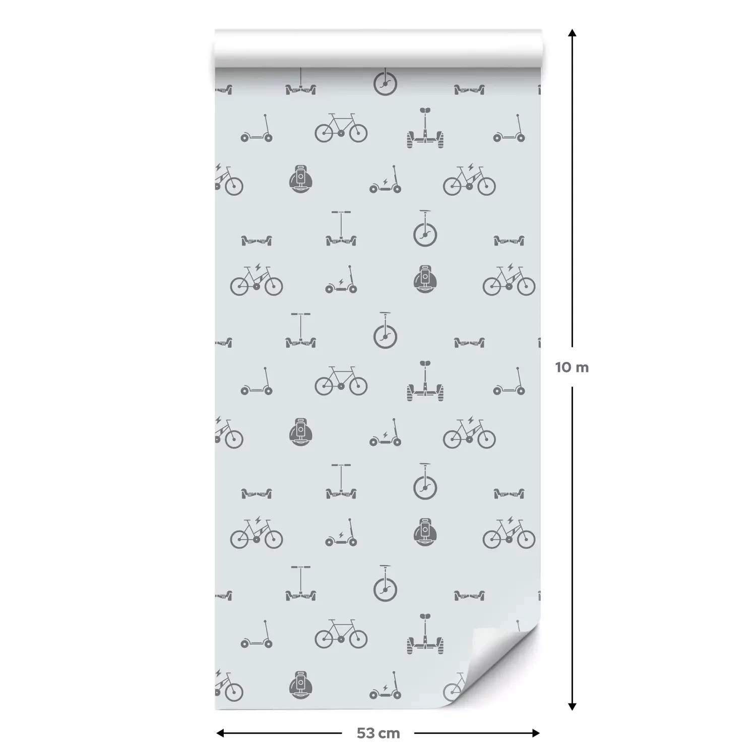 Eine Standard-Tapetenrolle hat die Maße 0,53 m x 10 m und deckt eine Wandfläche von etwa 5 m² ab.