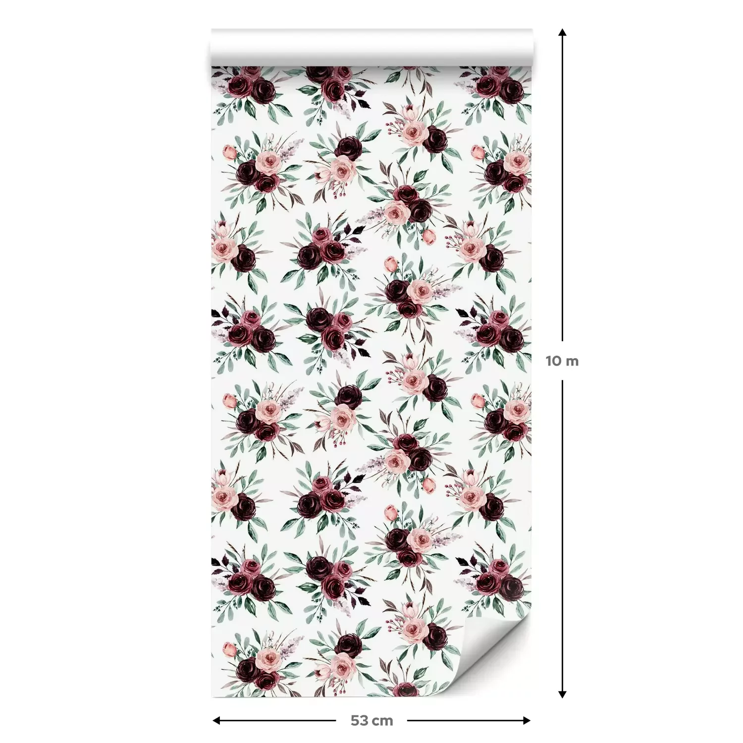 Eine Standard-Tapetenrolle hat die Maße 0,53 m x 10 m und deckt eine Wandfläche von etwa 5 m² ab.