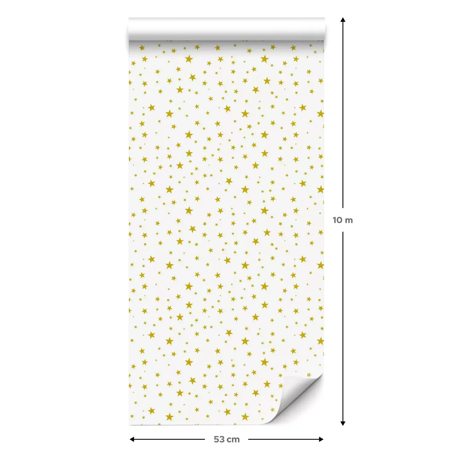 Eine Standard-Tapetenrolle hat die Maße 0,53 m x 10 m und deckt eine Wandfläche von etwa 5 m² ab.