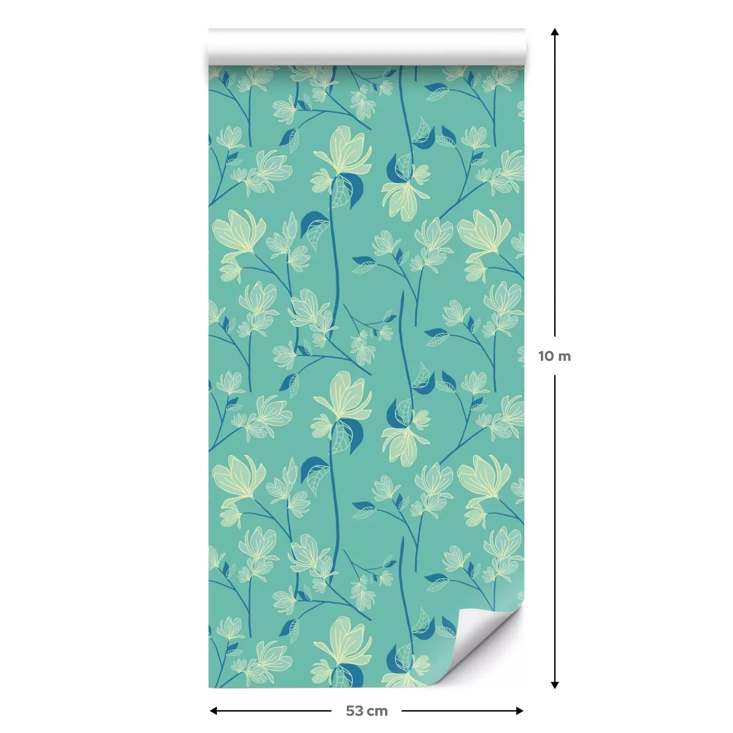 Eine Standard-Tapetenrolle hat die Maße 0,53 m x 10 m und deckt eine Wandfläche von etwa 5 m² ab.