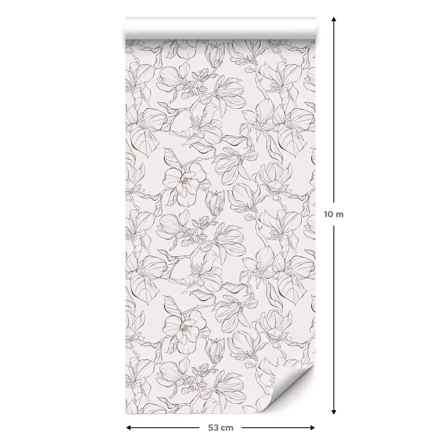Eine Standard-Tapetenrolle hat die Maße 0,53 m x 10 m und deckt eine Wandfläche von etwa 5 m² ab.