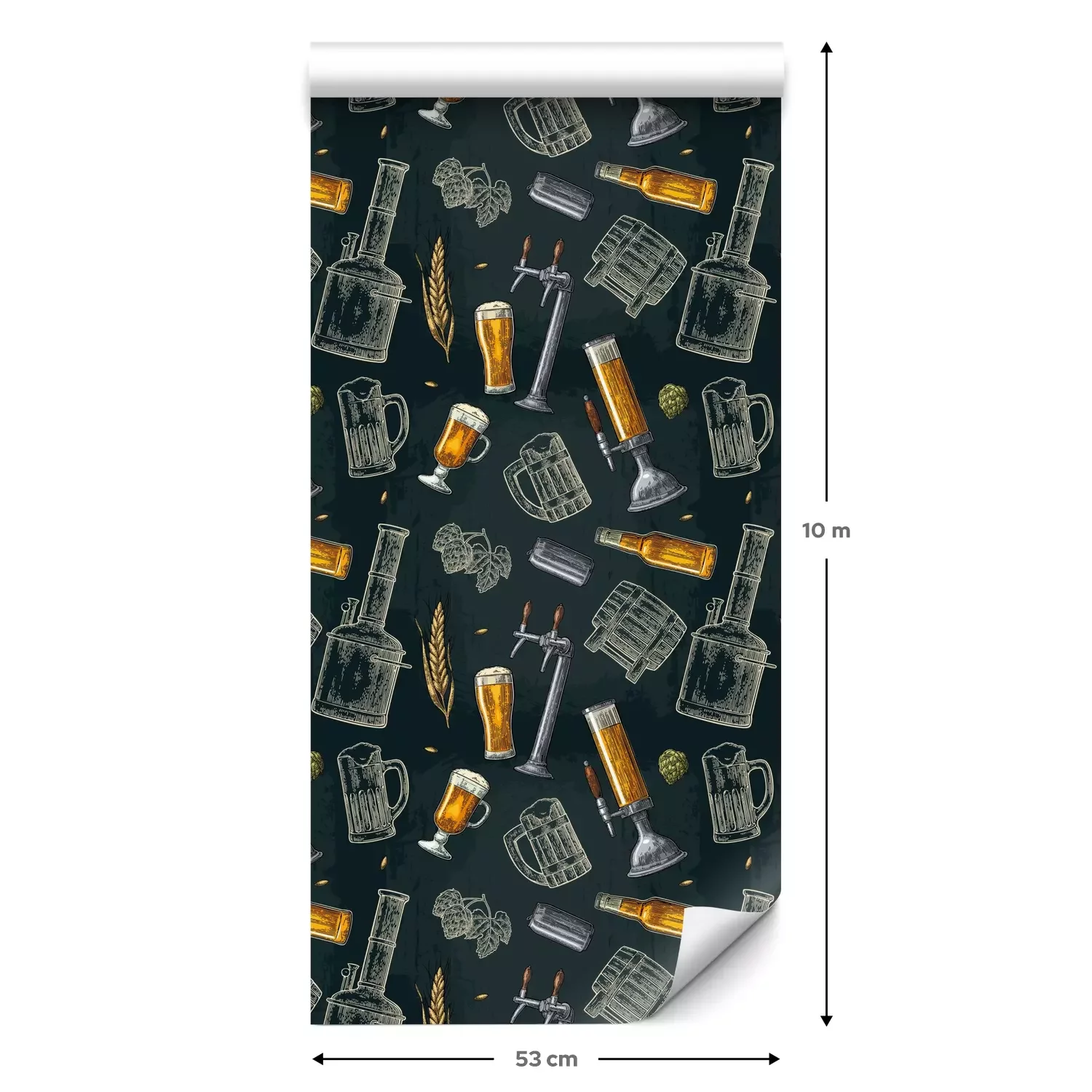 Eine Standard-Tapetenrolle hat die Maße 0,53 m x 10 m und deckt eine Wandfläche von etwa 5 m² ab.