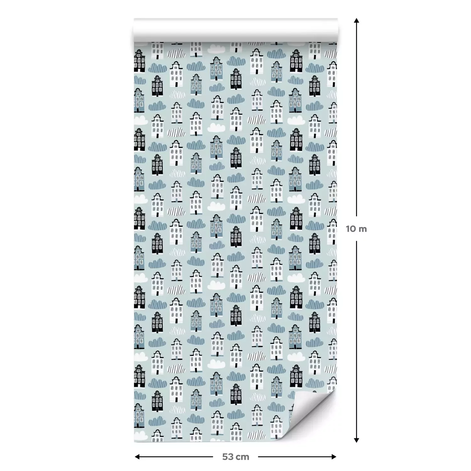 Eine Standard-Tapetenrolle hat die Maße 0,53 m x 10 m und deckt eine Wandfläche von etwa 5 m² ab.
