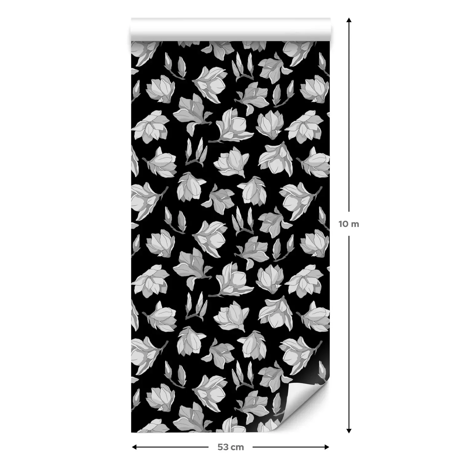 Eine Standard-Tapetenrolle hat die Maße 0,53 m x 10 m und deckt eine Wandfläche von etwa 5 m² ab.